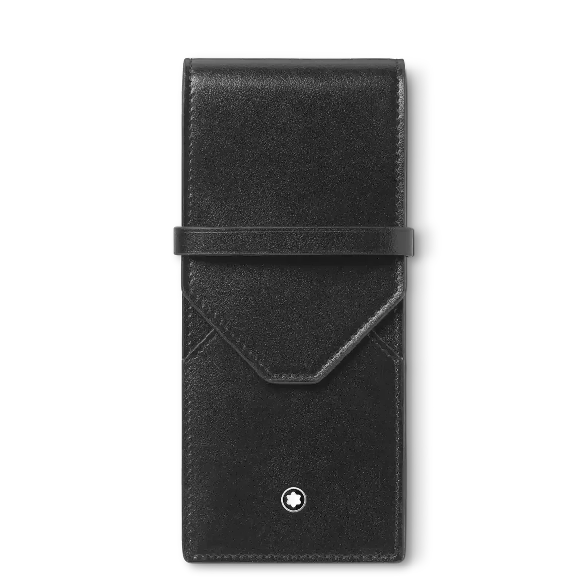 Concebida para acomodar três canetas do tamanho da Montblanc Meisterstück Classique ou LeGrand, esta bolsa de luxo para canetas oferece uma forma elegante de guardar as suas canetas com estilo. Feita à mão em couro preto suave, a bolsa resistente tem um acabamento com o emblema Montblanc.