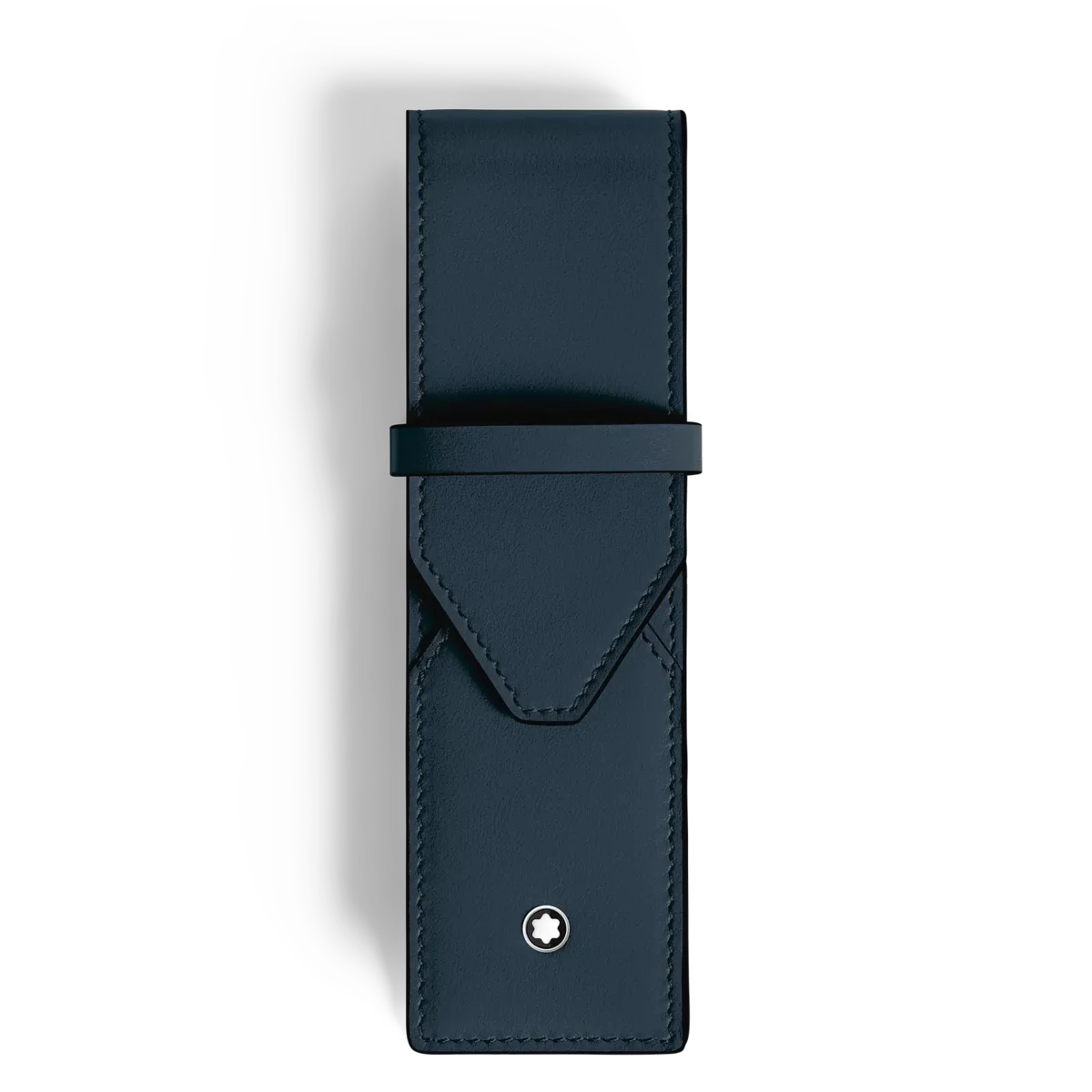 Uma companhia elegante para o escritório e muito mais, esta bolsa para canetas é confecionada em couro azul aveludado Meisterstück refinado, com um design em forma de envelope que se abre para revelar um compartimento para dois instrumentos de escrita do tamanho do Meisterstück LeGrand ou Classique. O emblema Montblanc detalha a aba frontal.