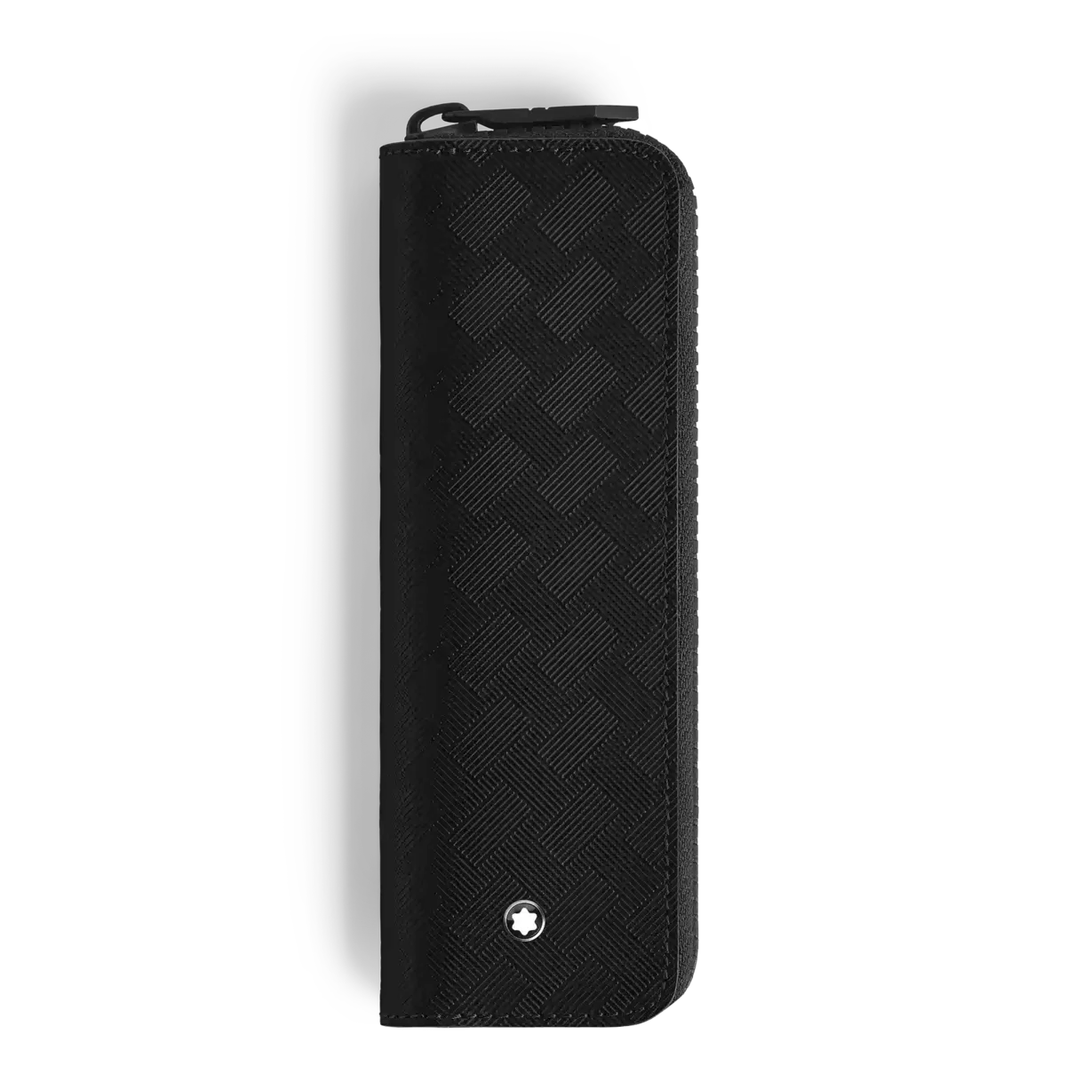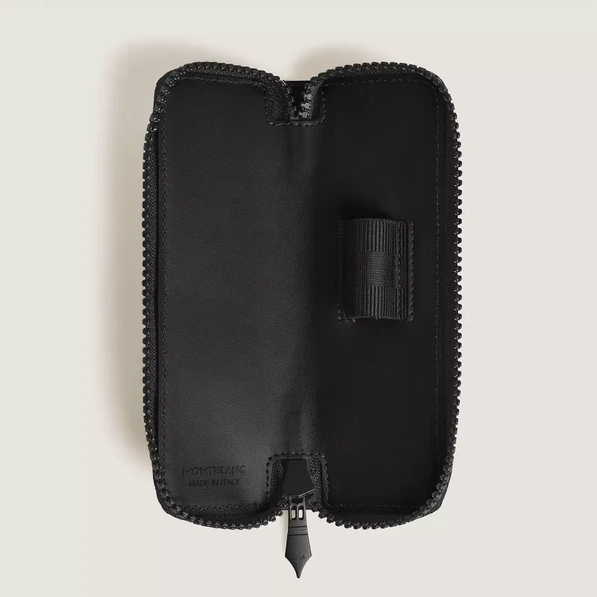 Confeccionada em couro preto de grão integral com o icónico motivo Extreme 3.0, esta bolsa para canetas oferece uma maneira elegante de transportar ou guardar com segurança o seu instrumento de escrita favorito. Concebida para acomodar uma caneta do tamanho da Meisterstück Classique ou Le Grand, possui um fecho de correr seguro, um puxador em forma de ponta e é finalizada com o emblema Montblanc para um toque refinado.