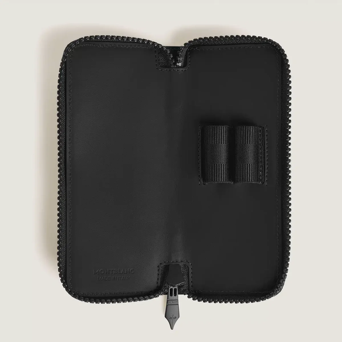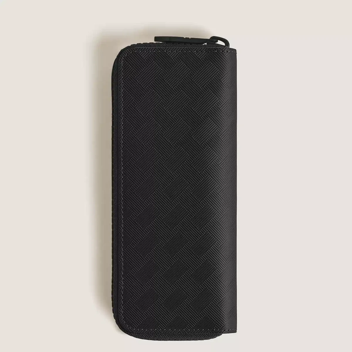 Confeccionada em couro preto de grão integral com o icónico motivo Extreme 3.0, esta bolsa para canetas oferece uma maneira elegante de transportar ou guardar com segurança os seus instrumentos de escrita favoritos. Concebida para acomodar duas canetas do tamanho da Meisterstück Classique ou Le Grand, possui um fecho de correr seguro, um puxador em forma de ponta e é finalizada com o emblema Montblanc para um toque refinado.