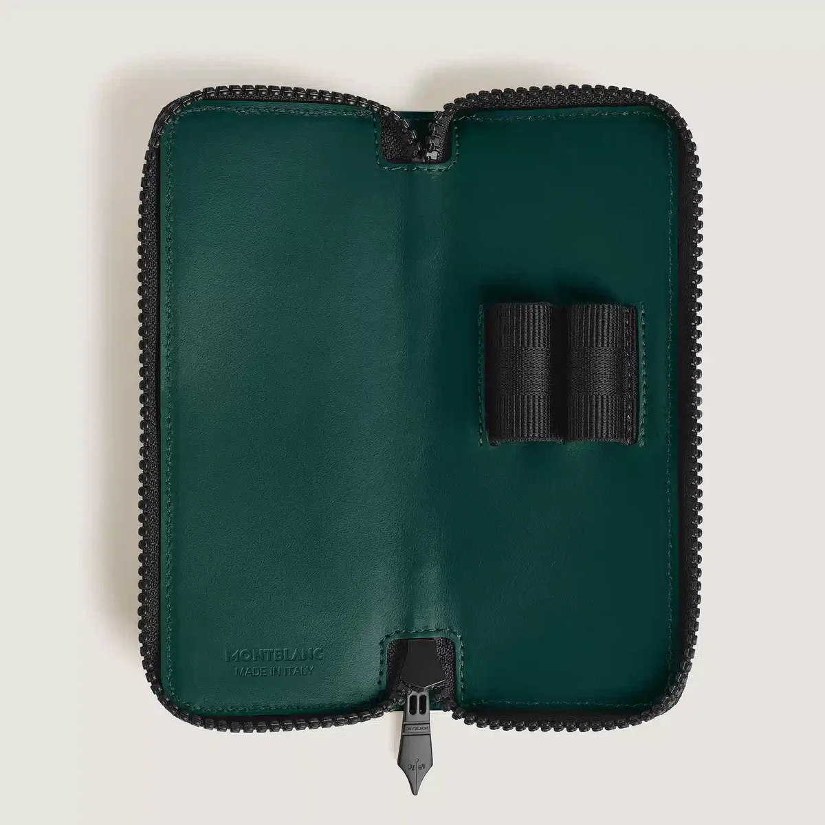 Confeccionada em couro de grão integral em verde britânico e gravada com o icónico motivo Extreme 3.0, esta bolsa para canetas oferece uma maneira elegante de transportar ou guardar com segurança os seus instrumentos de escrita favoritos. Concebida para acomodar duas canetas do tamanho da Meisterstück Classique ou Le Grand, possui um fecho de correr seguro, um puxador em forma de ponta e um acabamento com o emblema Montblanc para um toque refinado.