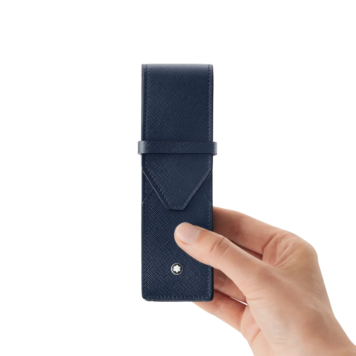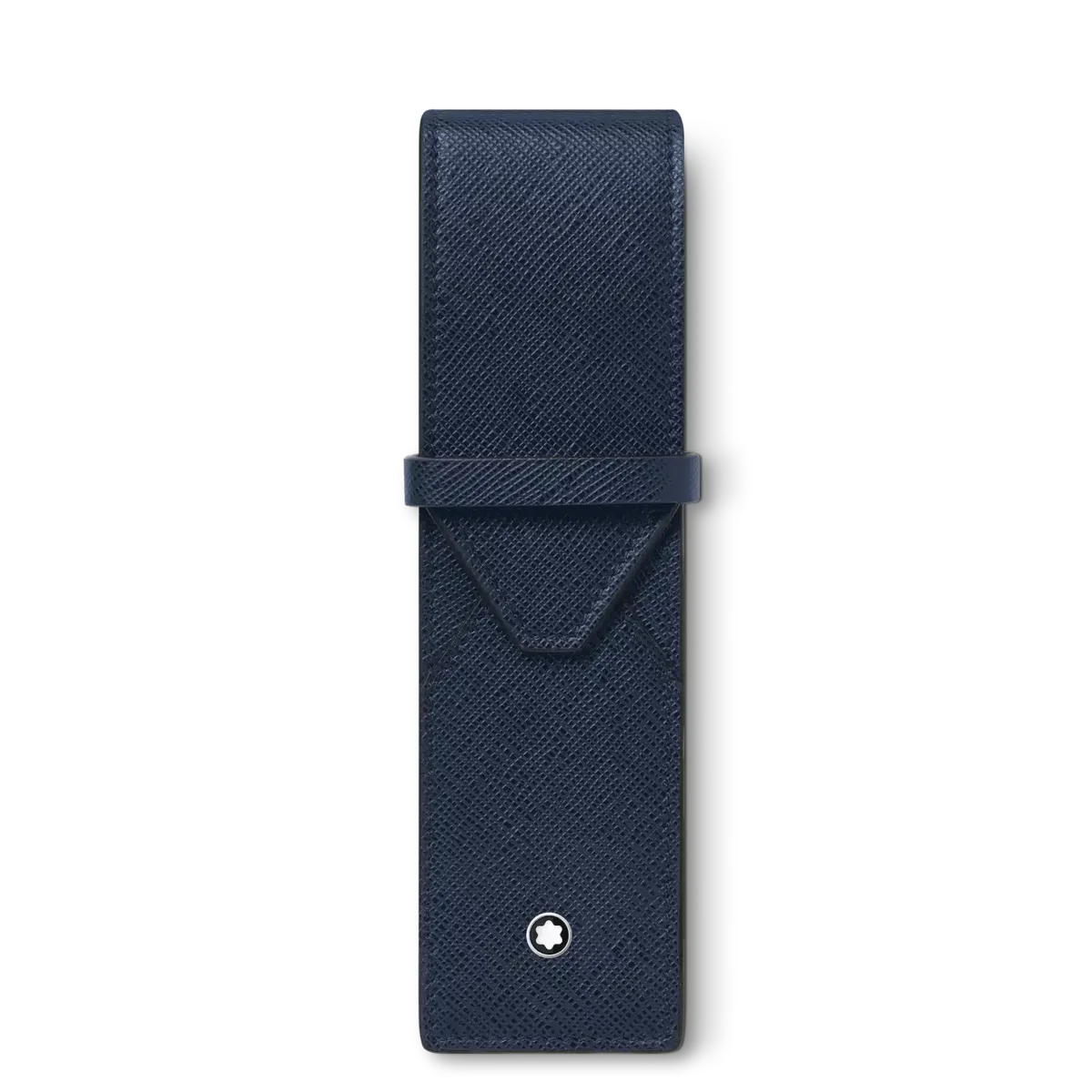 Uma companhia constante para profissionais de negócios e amantes da palavra escrita, esta elegante bolsa para canetas tem espaço para dois instrumentos de escrita. A sua silhueta em couro azul-tinta de grão integral foi criada com formas sobrepostas, inspiradas na forma de um envelope.