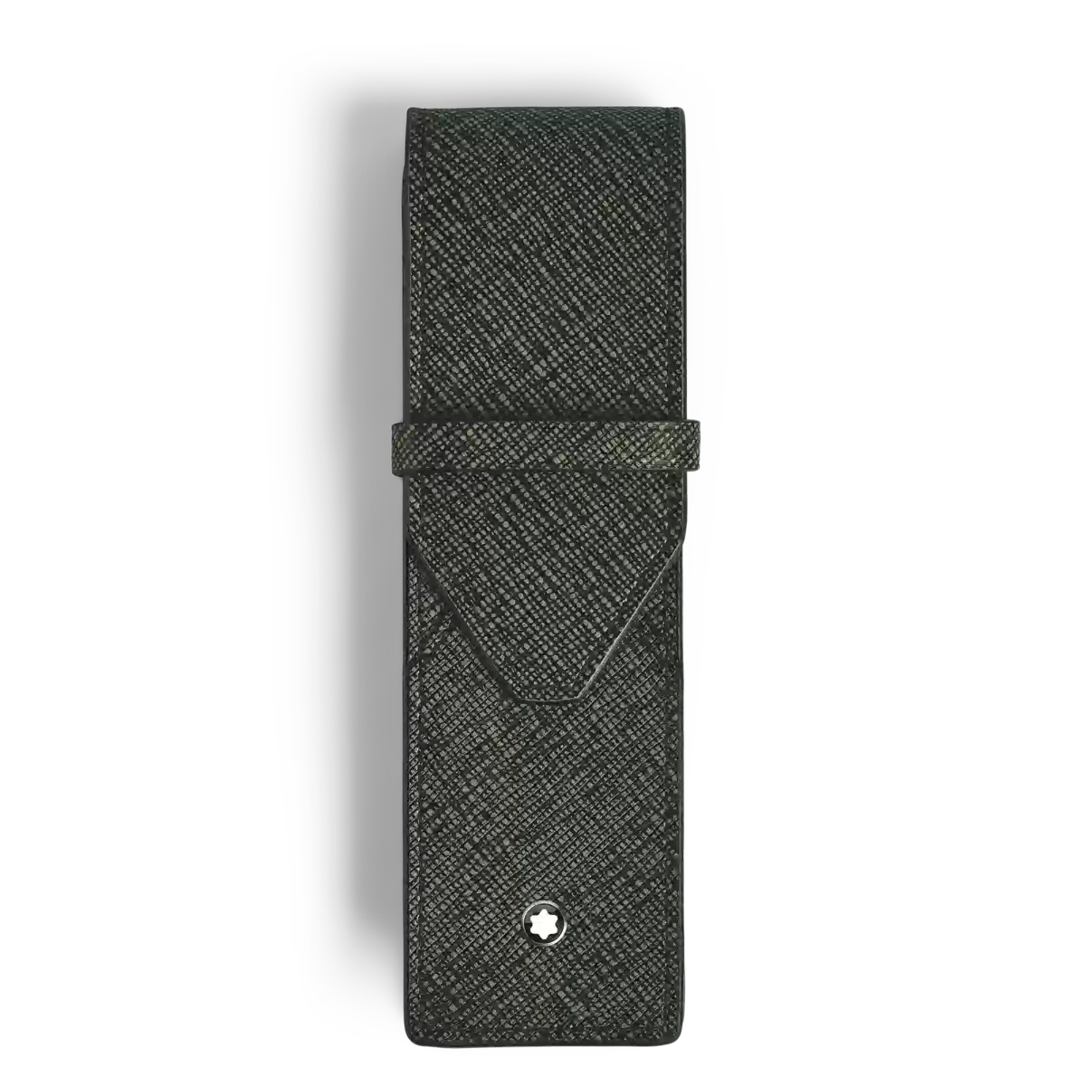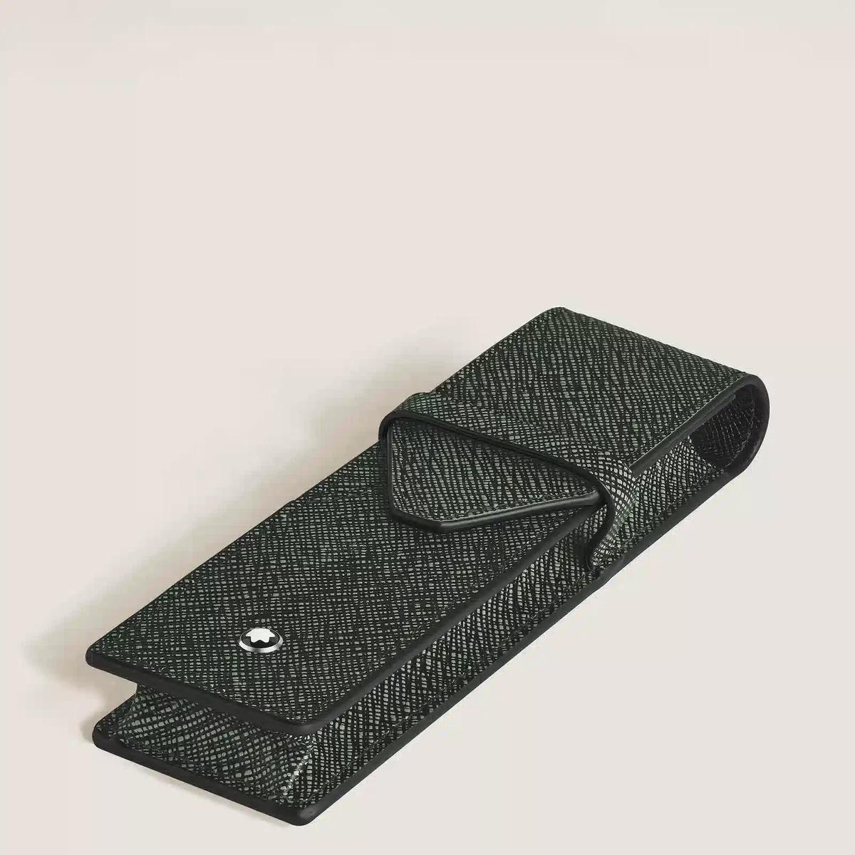 Um acessório elegante e refinado, esta bolsa para canetas foi concebida para guardar até dois instrumentos de escrita. Confecionada em couro sartorial gravado numa elegante combinação de dois tons, cáqui e preto, a sua silhueta sobreposta inspira-se na forma de um envelope, prestando homenagem à cultura da escrita.