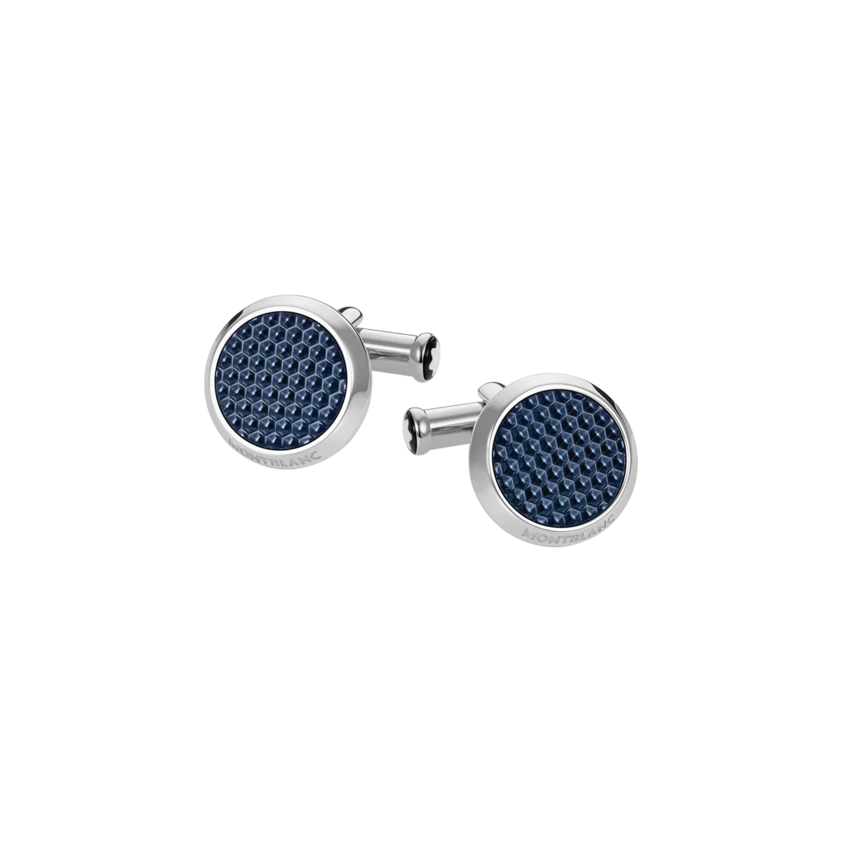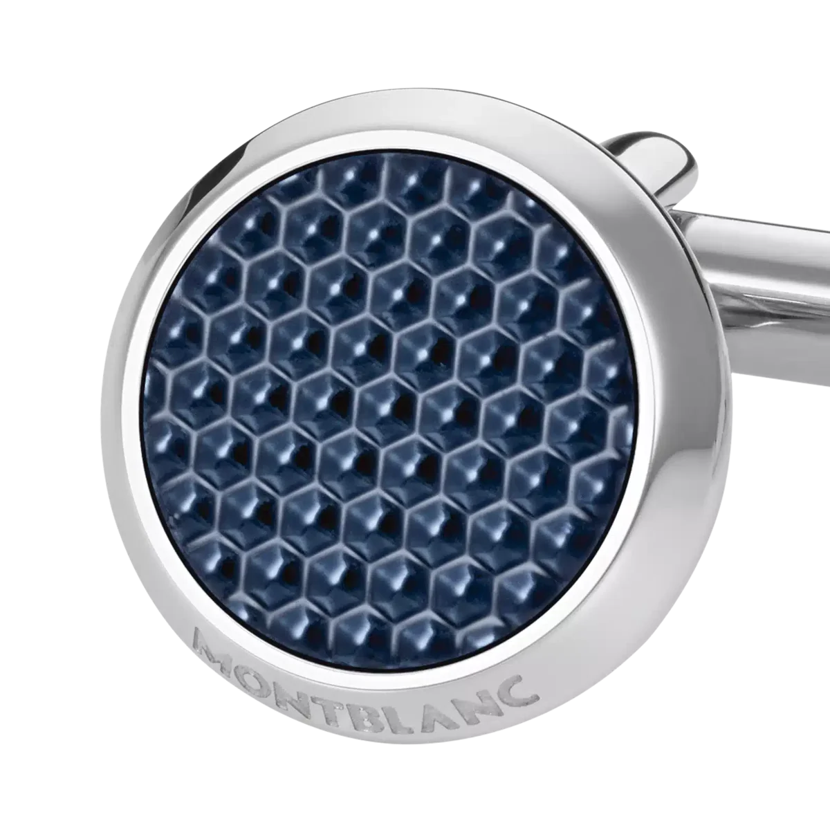 Os botões de punho Meisterstück celebram o estilo discreto e a elegância. Associados ao instrumento de escrita Montblanc Meisterstück, a forma redonda intemporal em aço inoxidável com incrustações de laca azul com padrão hexagonal cria uma joia com a poderosa assinatura Montblanc.
