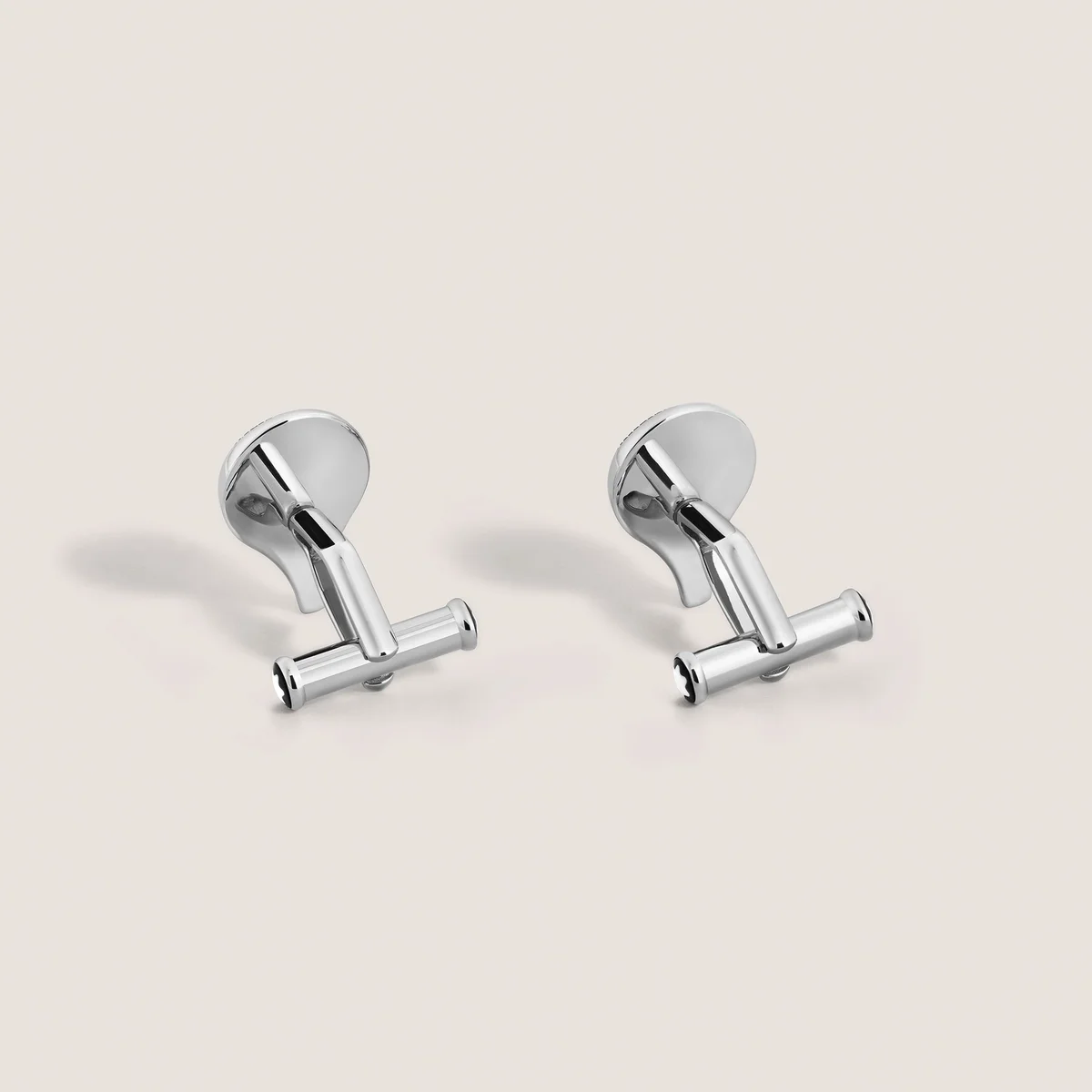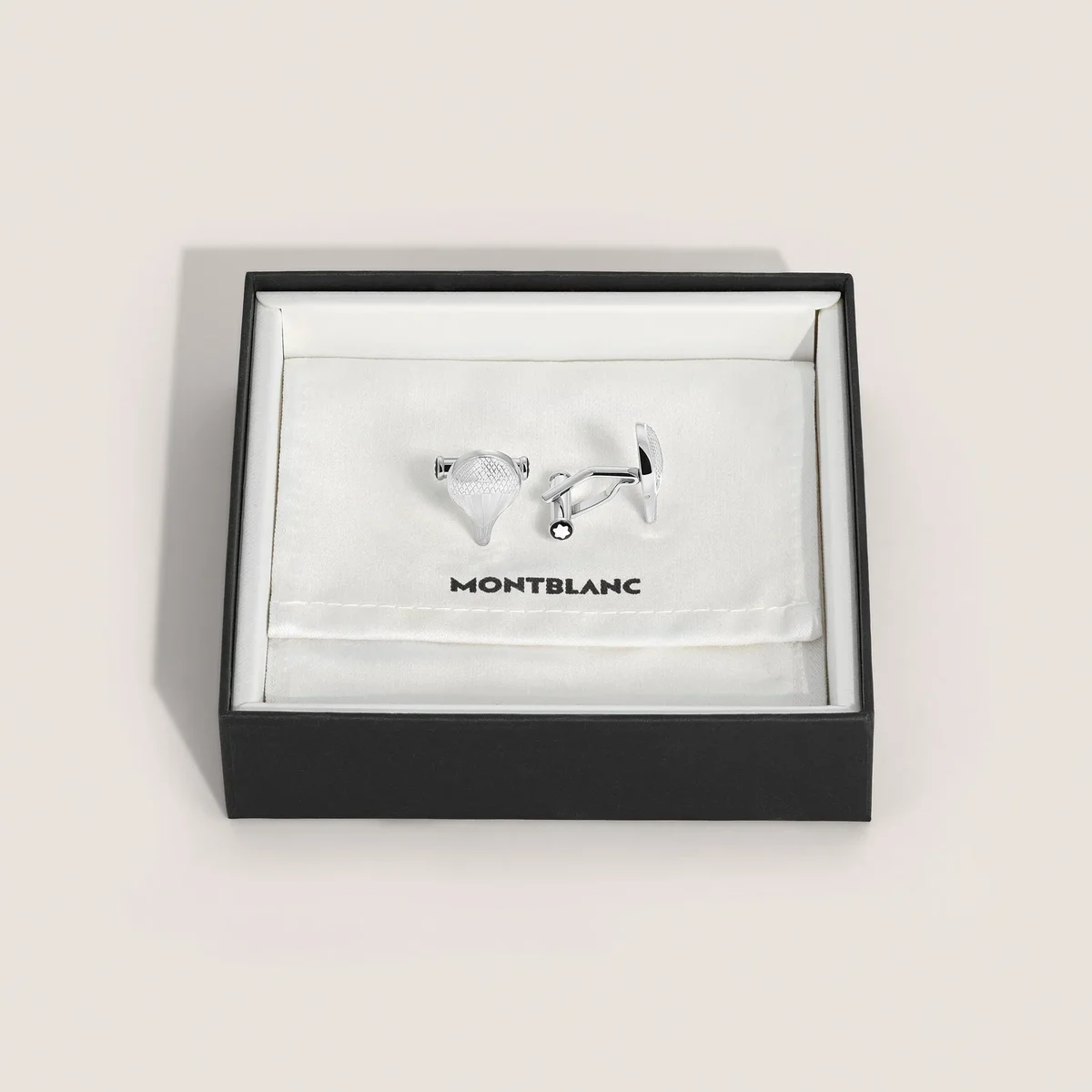 Botões de punho em aço dedicados à coleção Meisterstück À Volta do Mundo em 80 Dias. O design é adornado com uma representação de um balão de ar quente, uma referência ao primeiro romance de aventura de Júlio Verne.