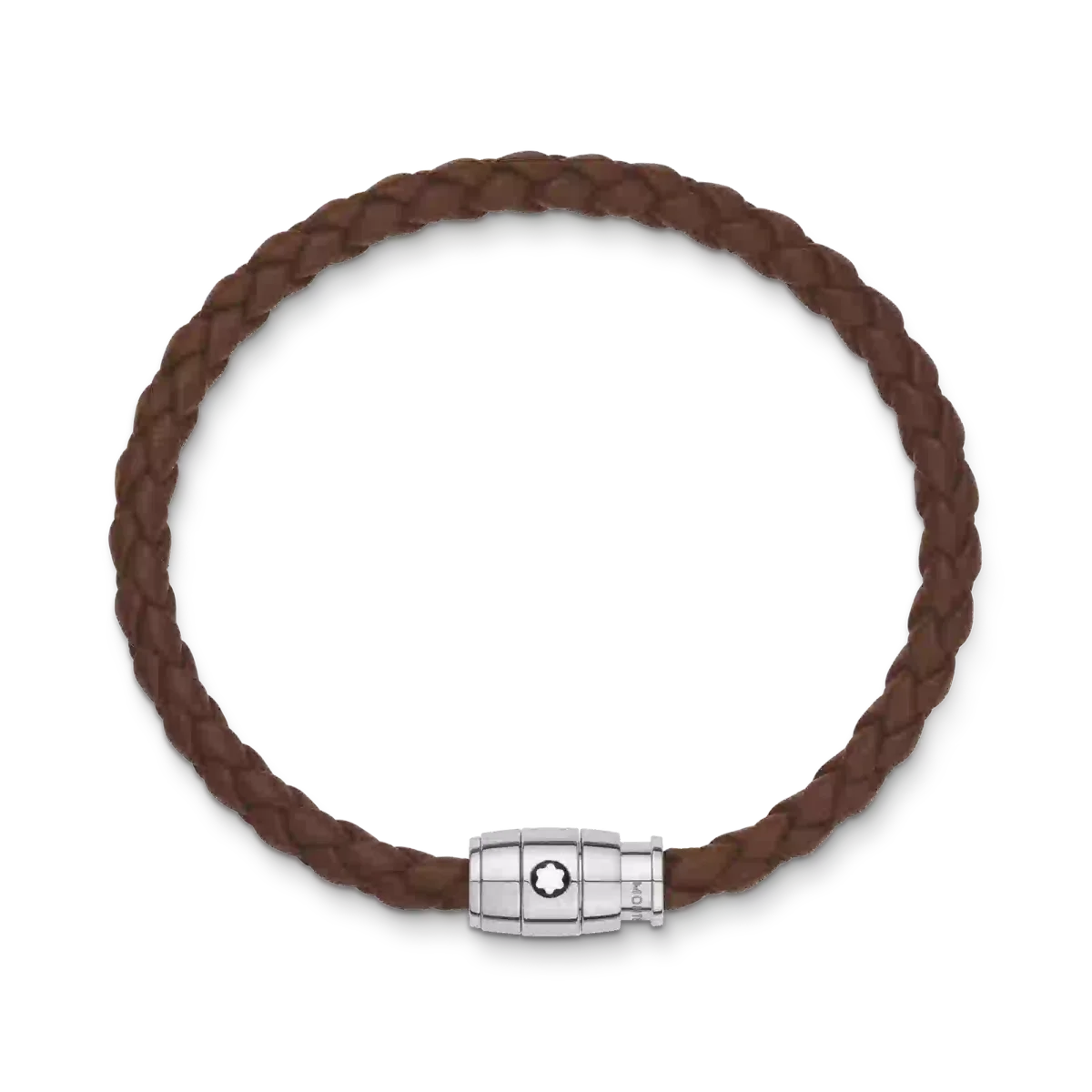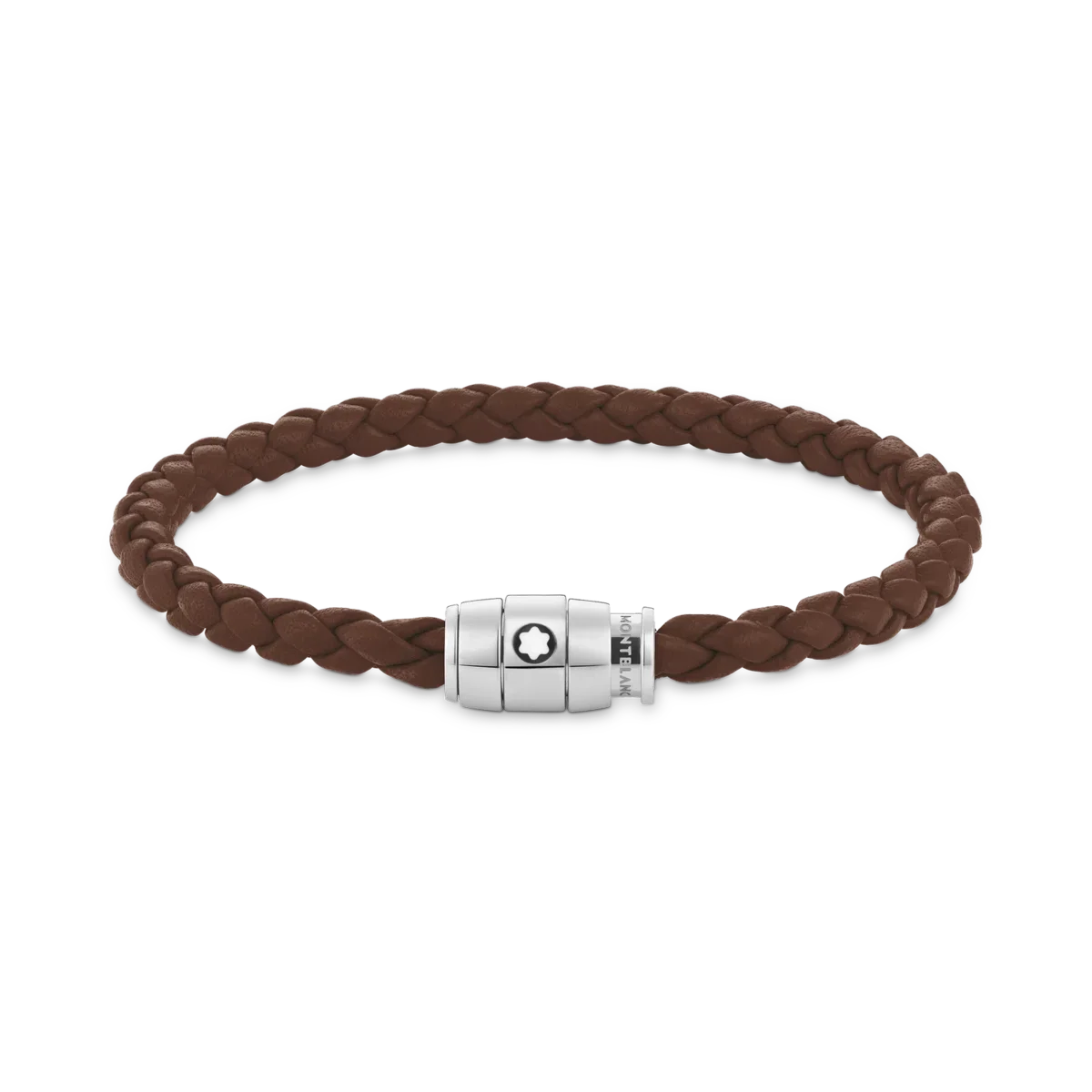 Esta peça de joalharia, confecionada em couro macio, apresenta um fecho em aço inoxidável polido adornado com o emblema Montblanc.
