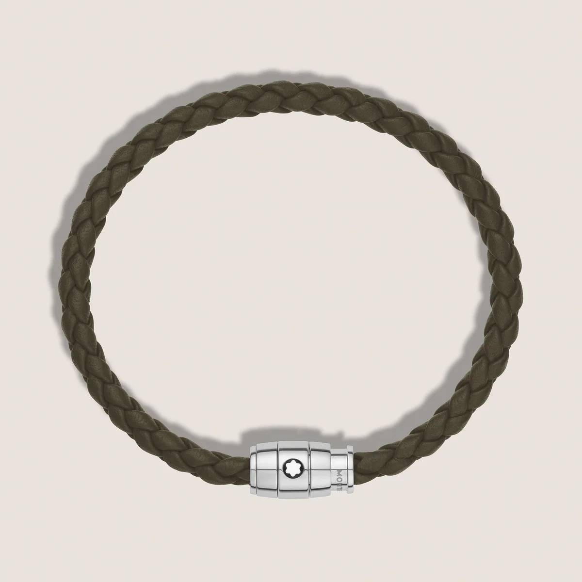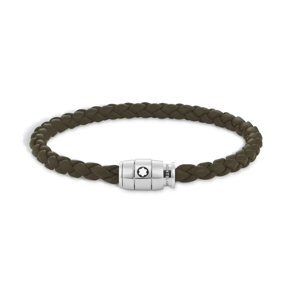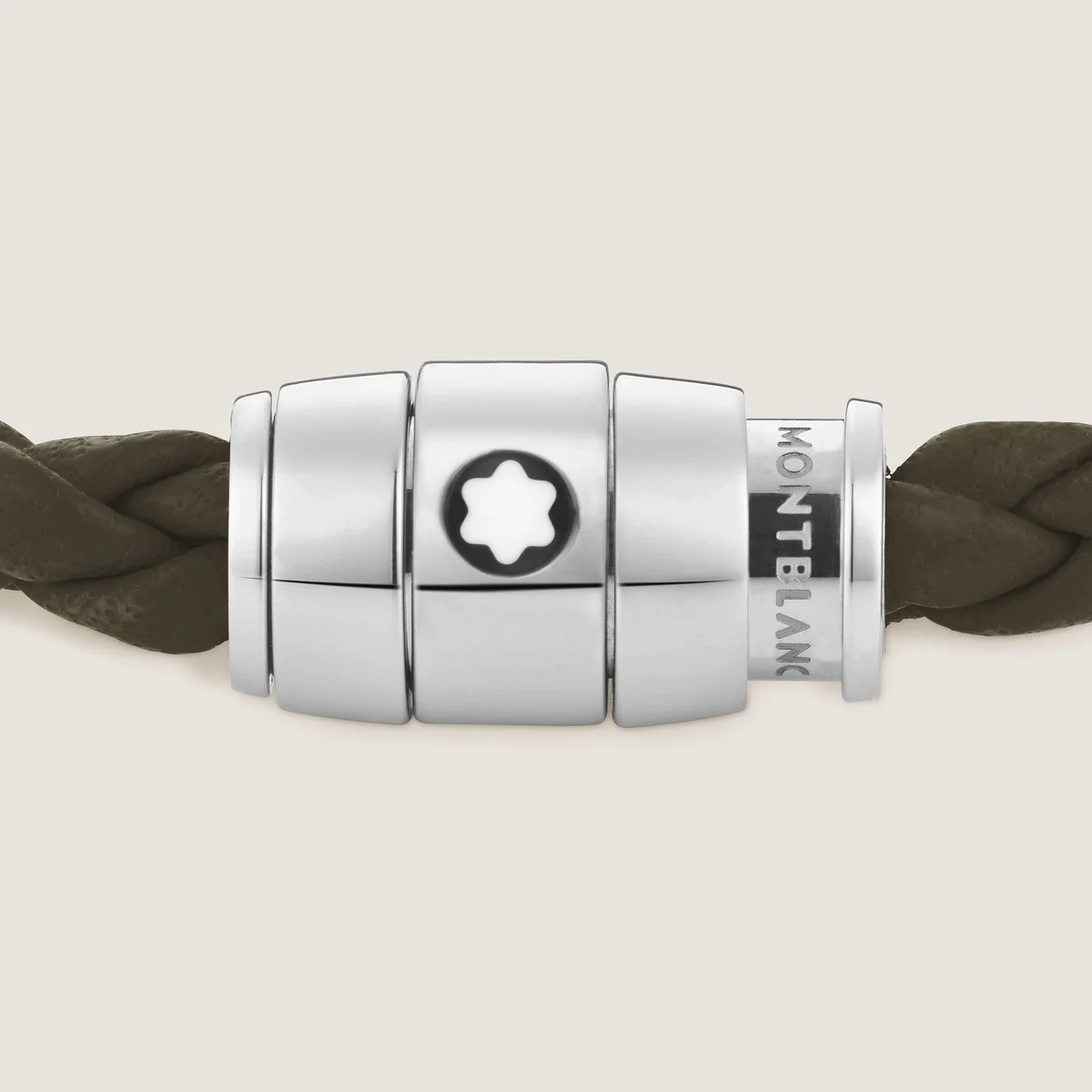 Descubra todos os detalhes da pulseira pequena em couro macio, cor cáqui. Compre online na loja oficial da Montblanc.