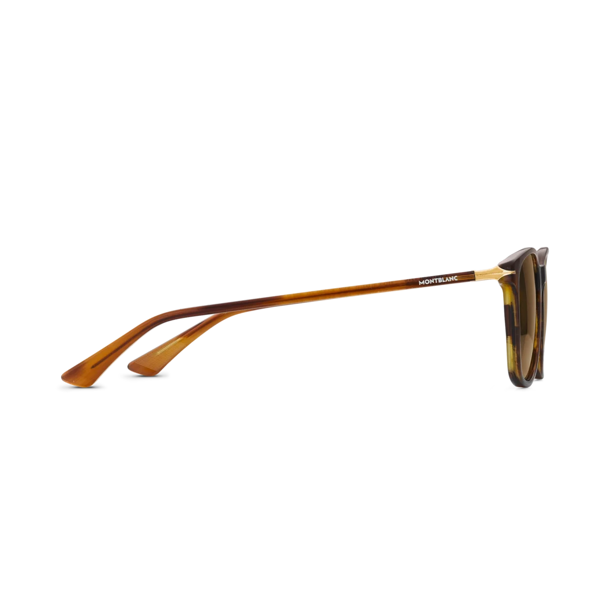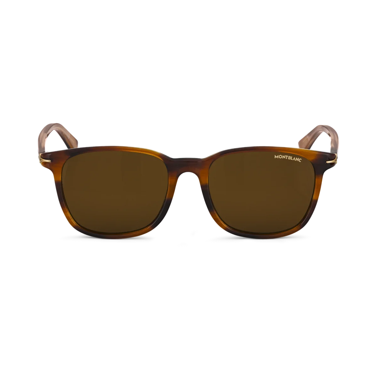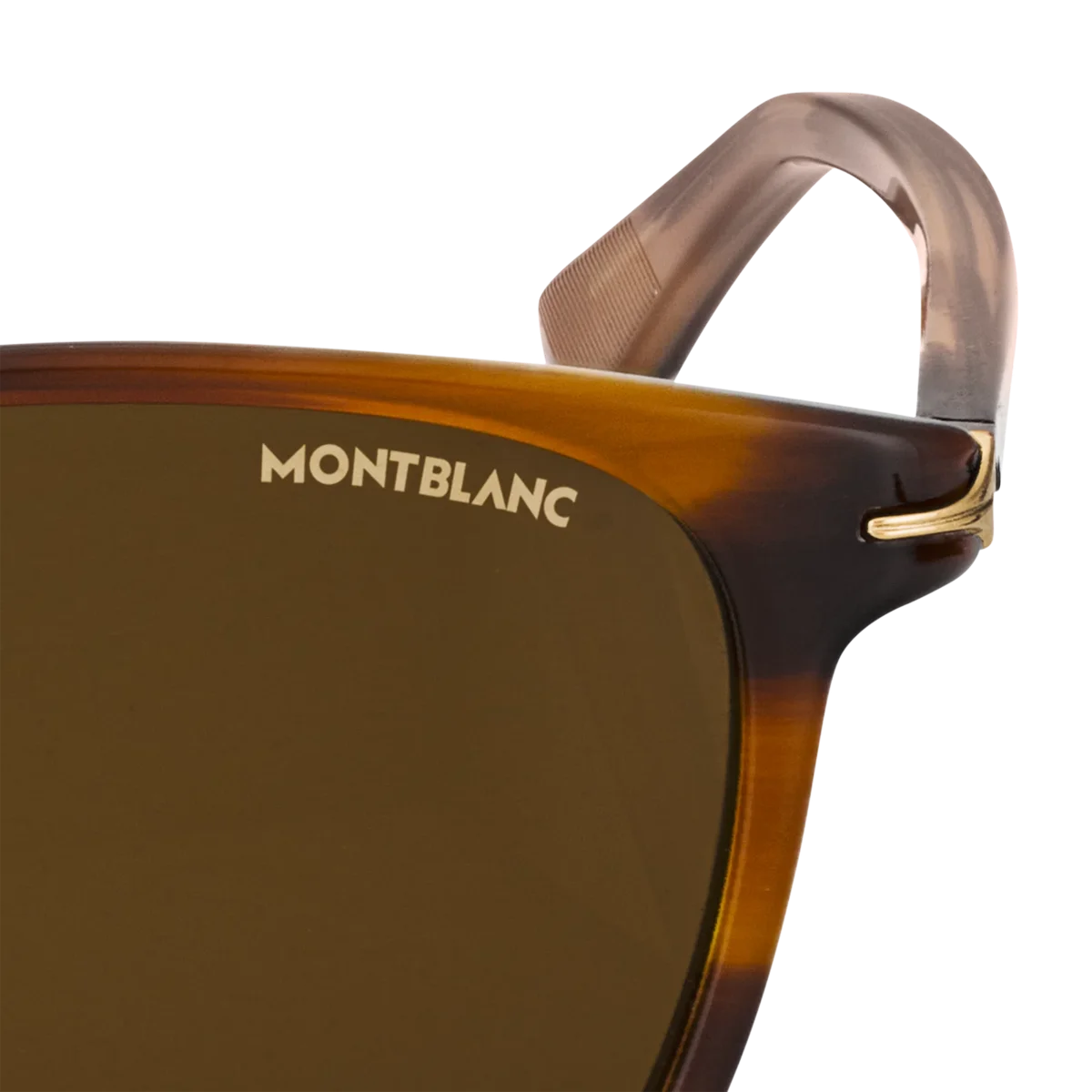 Estes óculos de sol quadrados apresentam uma armação em acetato castanho e lentes castanhas. Inspirados no design da ponta dos instrumentos de escrita, apresentam um detalhe decorativo na ponta nas hastes em acetato. O logótipo Montblanc está gravado a laser na lente esquerda.