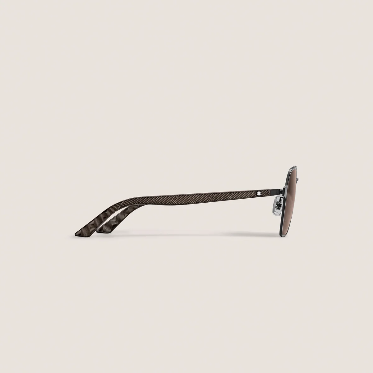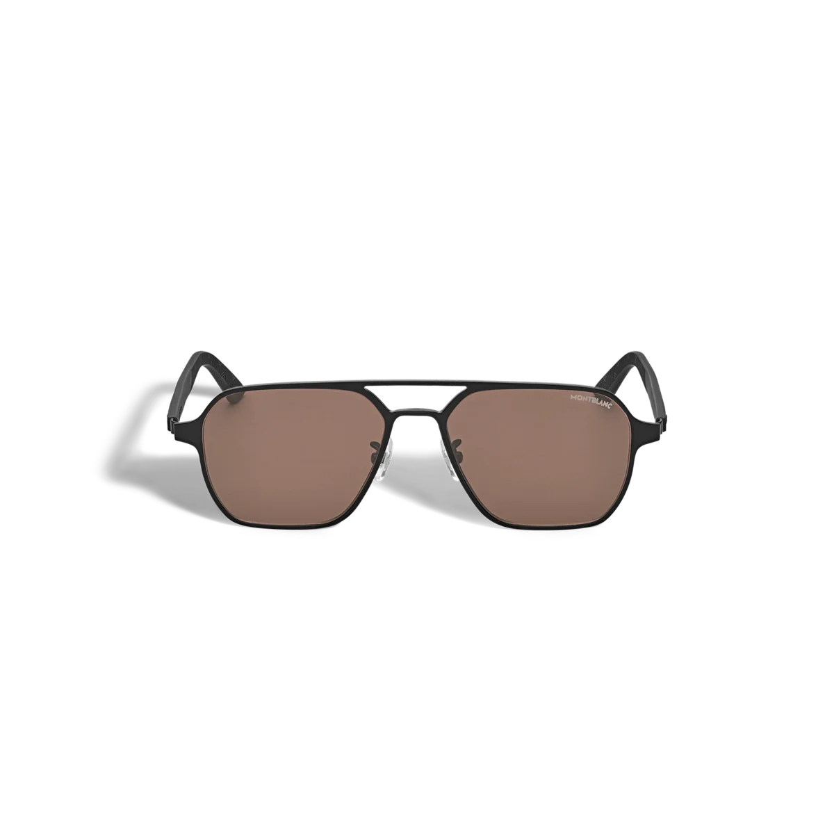 Estes óculos de sol de estilo quadrado têm uma armação em metal preto e lentes castanhas. Apresentam uma ponte dupla em metal na parte frontal. O emblema Montblanc está incorporado no design das hastes e as pontas das hastes apresentam pontas de borracha com o padrão Montblanc Extreme 3.0 para transmitir um visual desportivo. O logótipo Montblanc está gravado a laser na lente esquerda dos óculos de sol.