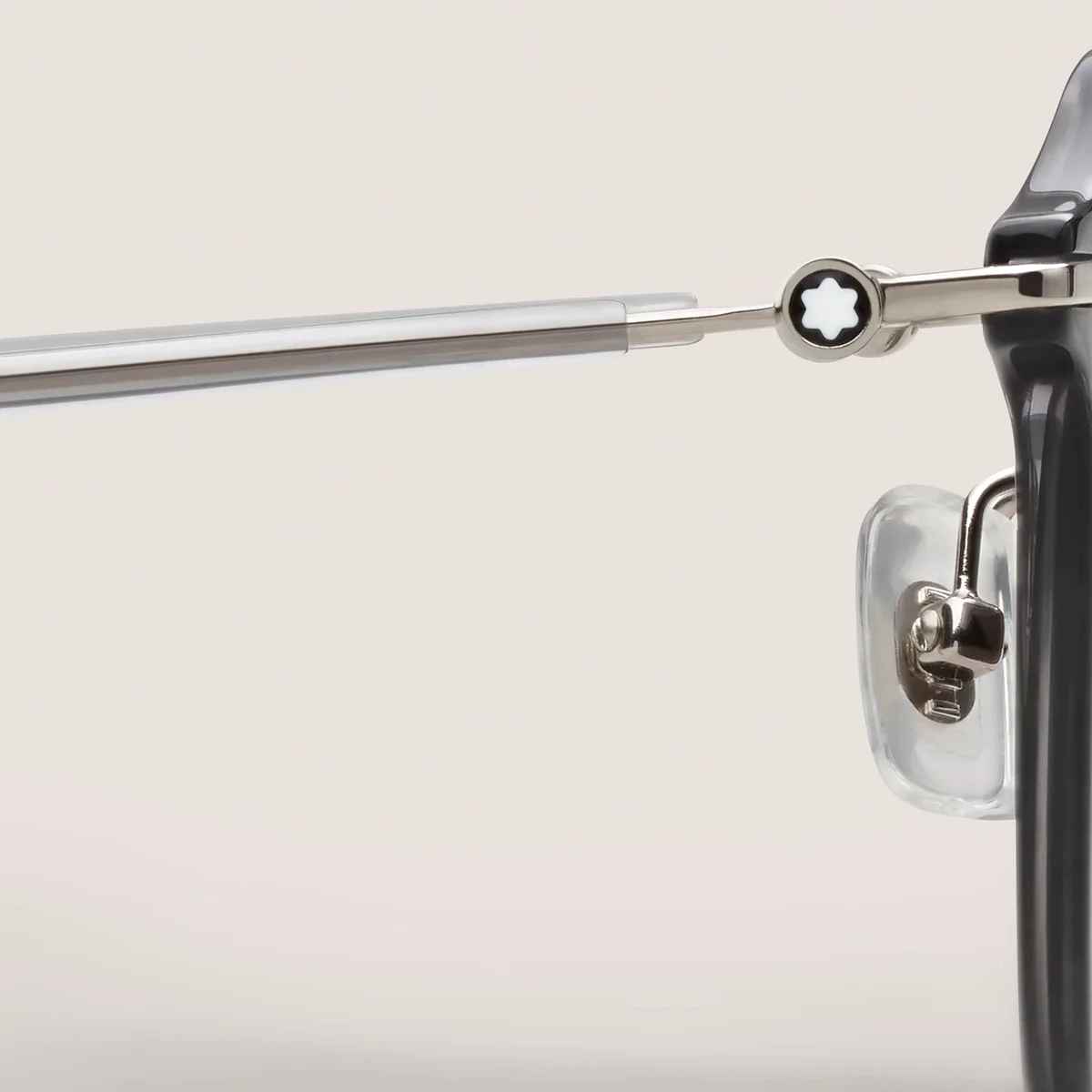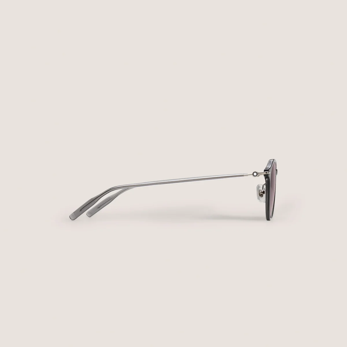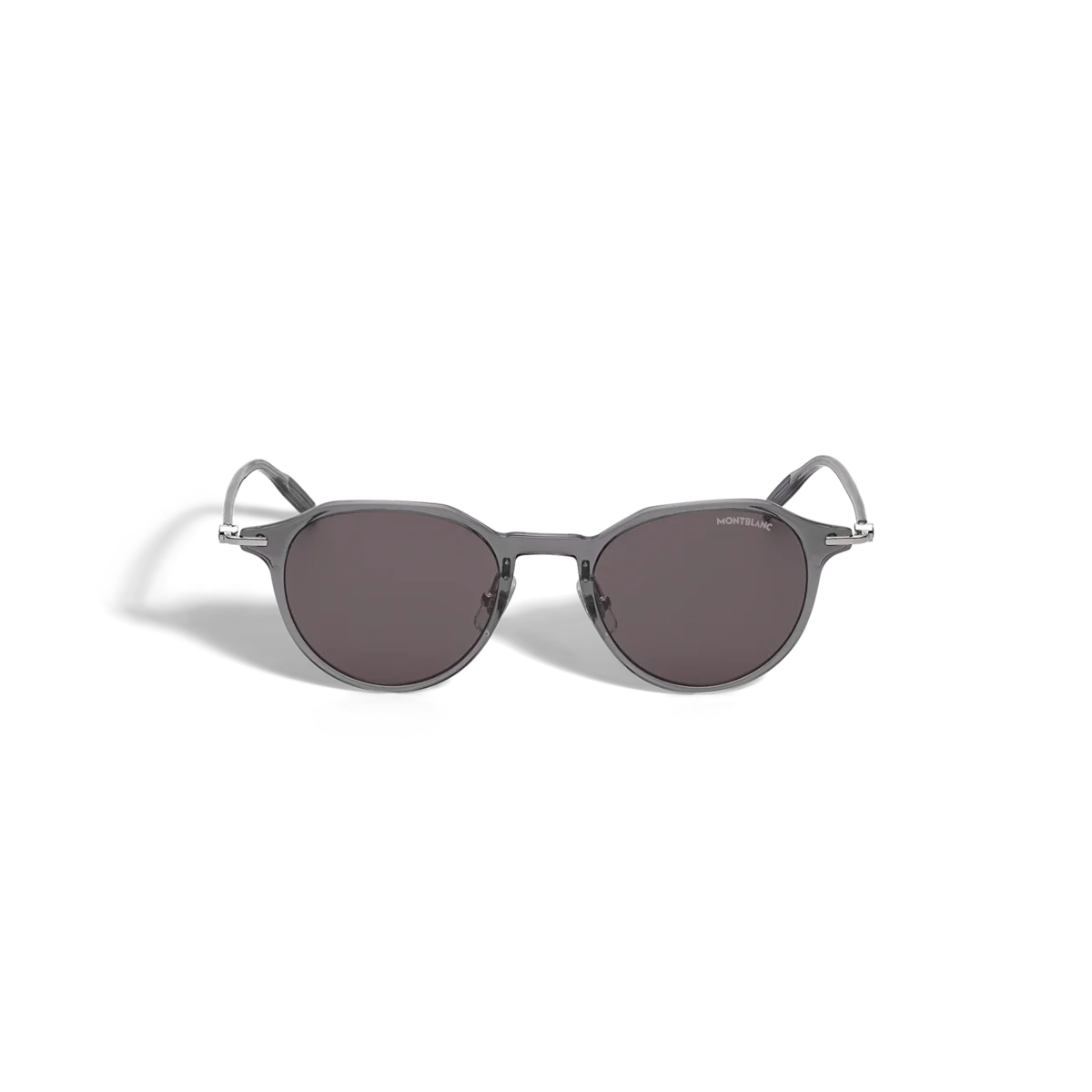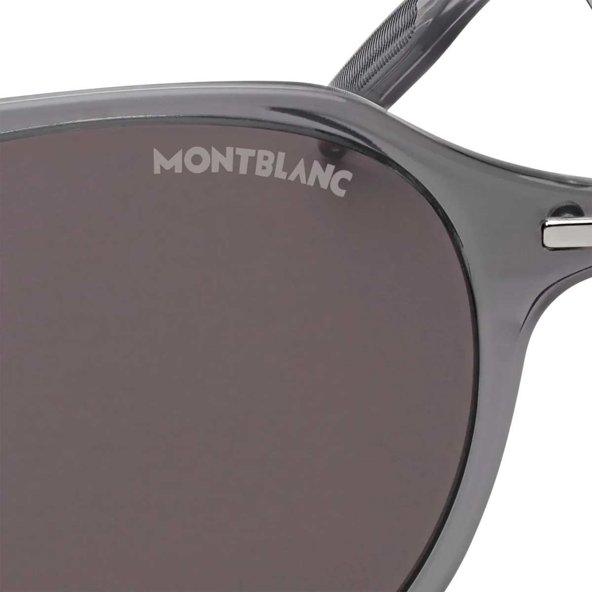 Estes óculos de sol redondos têm uma armação injetada cinzenta e lentes cinzentas. O emblema Montblanc com capa de neve está encapsulado no design das hastes metálicas. O logótipo Montblanc está gravado a laser na lente esquerda e o padrão antiderrapante está gravado a laser no lado interno das pontas transparentes das hastes para aumentar o conforto.
