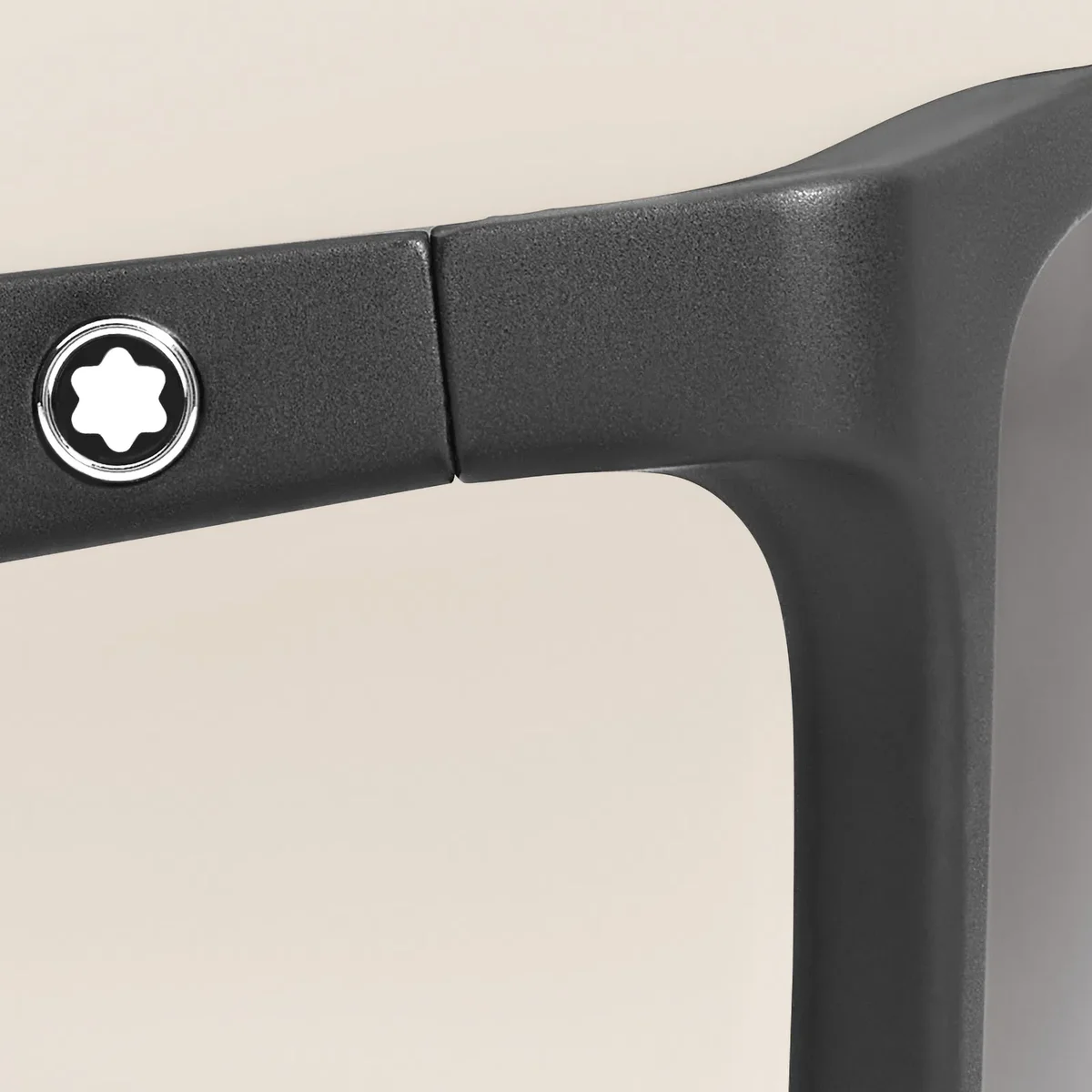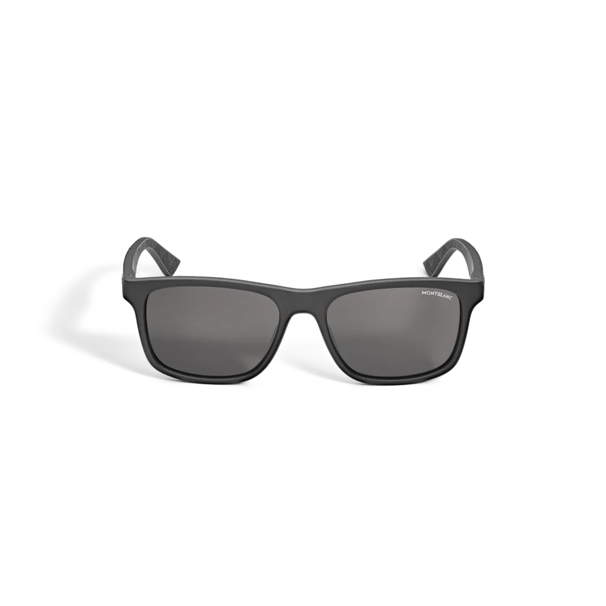 Estes óculos de sol de estilo retangular têm uma armação injetada na cor preta e lentes polarizadas cinzentas. O emblema Montblanc está encapsulado no design da haste e as pontas da haste apresentam pontas de borracha com o padrão Montblanc Extreme 3.0 para transmitir um visual desportivo. O logótipo Montblanc está gravado a laser na lente esquerda dos óculos de sol.