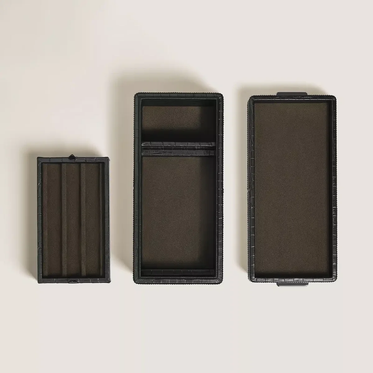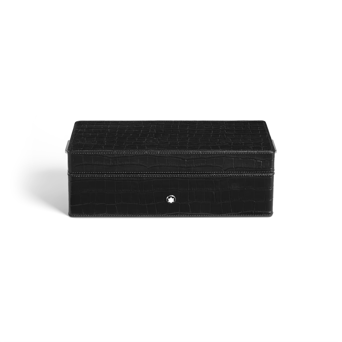Habilmente trabalhada, esta caixa para canetas possui compartimentos específicos para três instrumentos de escrita e tinta Montblanc. Combine-a com os acessórios de secretária da Montblanc para um toque refinado e sofisticado. Fabricada em Itália. Dimensões 260 x 90 x 120 mm.