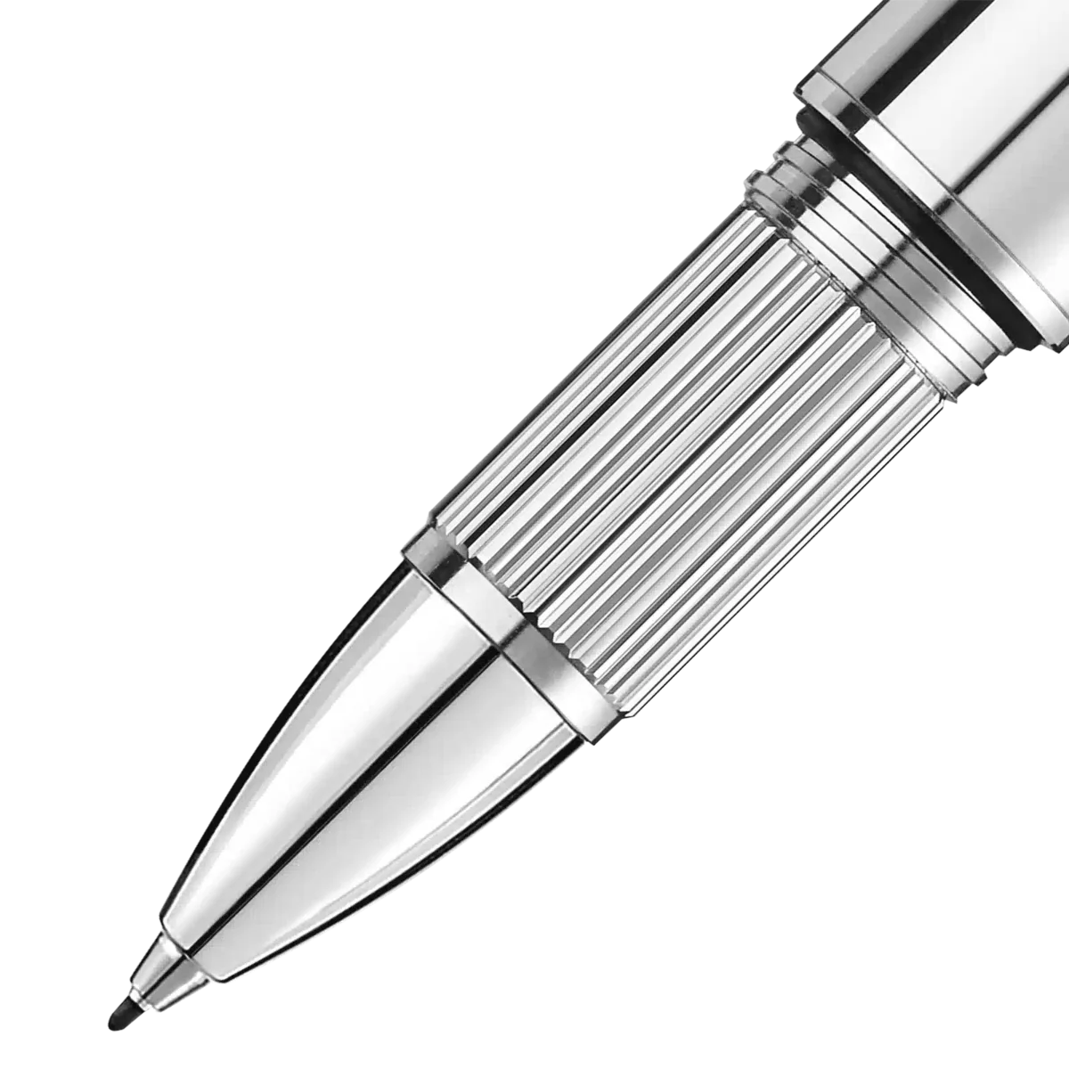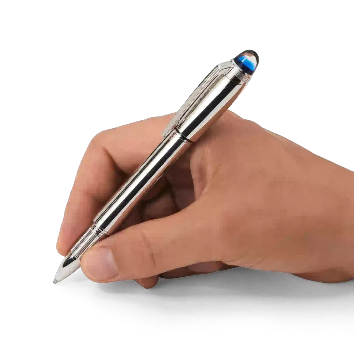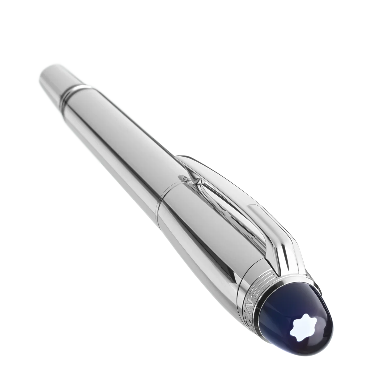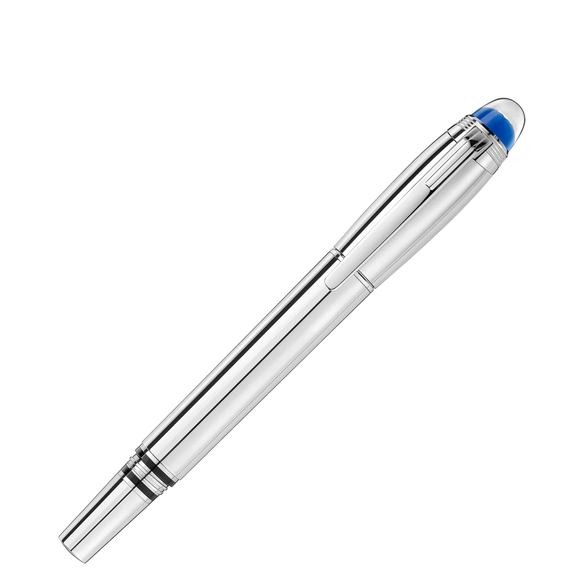 O novo StarWalker é sobre caminhar entre as estrelas. É sobre explorar o cosmos e galáxias distantes. É sobre fazer parte de uma das aventuras mais misteriosas e poderosas da humanidade: a exploração espacial. O novo design da coleção celebra a imensa emoção descrita por todos os viajantes espaciais ao ver o nosso planeta azul flutuando na vasta extensão do espaço. A tecnologia exclusiva do emblema StarWalker apresenta uma cúpula azul translúcida sob o emblema Montblanc, que lembra a Terra emergindo acima do horizonte lunar. A StarWalker Metal vem com uma tampa, acessórios e corpo revestidos a platina. Identificação n.º MB132512 Peso físico 50,28 g Dimensões 135,4 mm * 14,9 mm