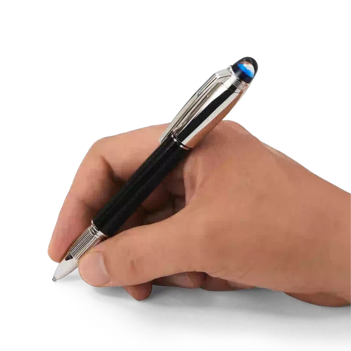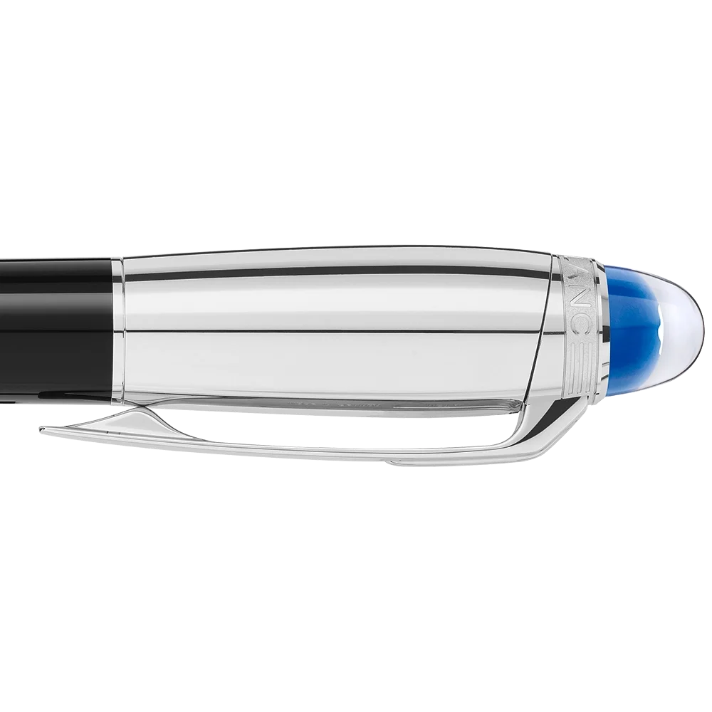 A nova StarWalker é sobre caminhar entre as estrelas. É sobre explorar o cosmos e galáxias distantes. É sobre fazer parte de uma das aventuras mais misteriosas e poderosas da humanidade: a exploração espacial. O novo design da coleção celebra a imensa emoção, descrita por todos os viajantes espaciais, de ver o nosso planeta azul flutuando na vasta extensão do espaço. A tecnologia exclusiva do emblema StarWalker apresenta uma cúpula azul translúcida sob o emblema Montblanc, que lembra a Terra emergindo acima do horizonte lunar. A StarWalker Doué vem com uma tampa e acessórios revestidos a platina e um corpo em resina preciosa preta. N.º de identificação MB132510 Peso físico 36,62 g Dimensões 134,5 mm * 13,1 mm