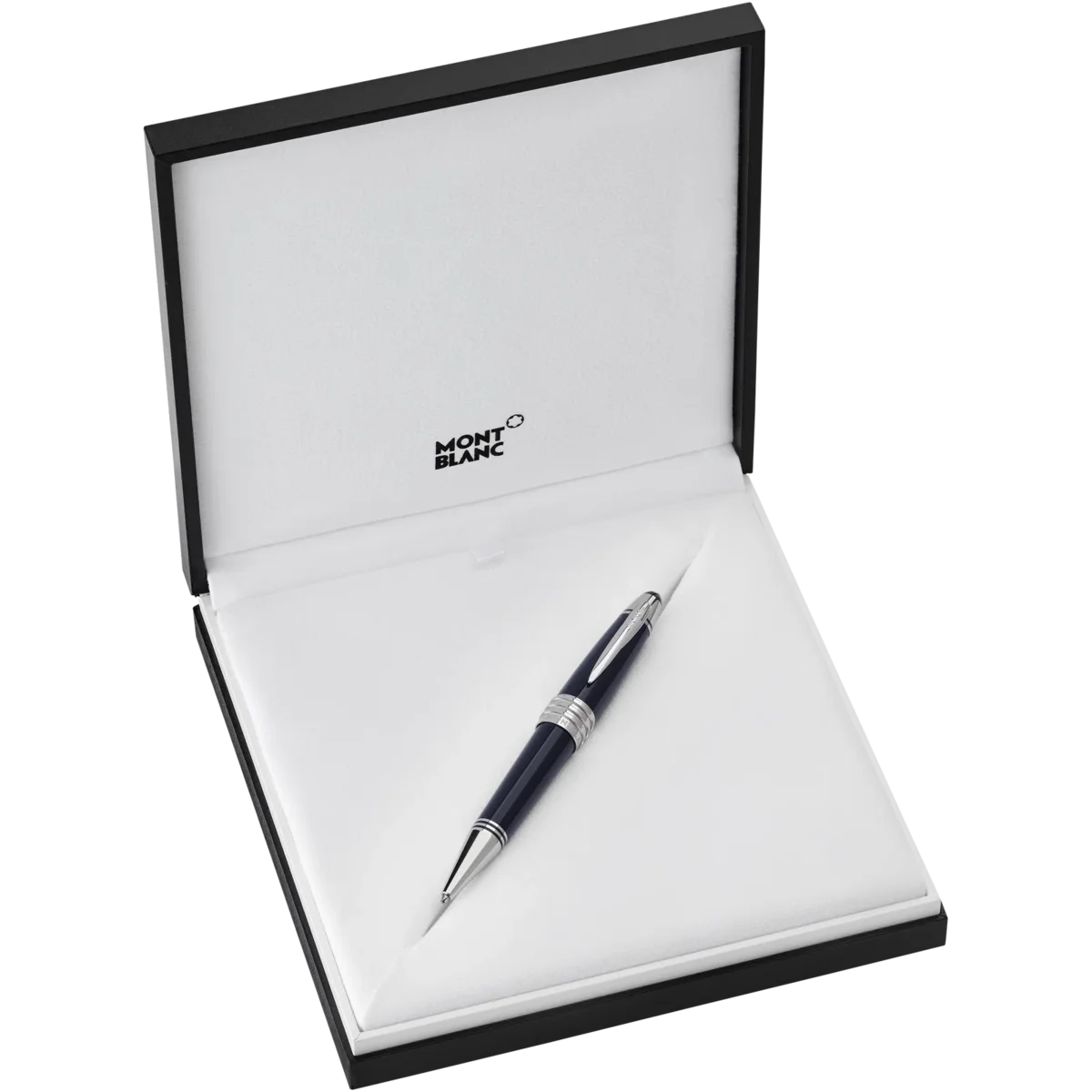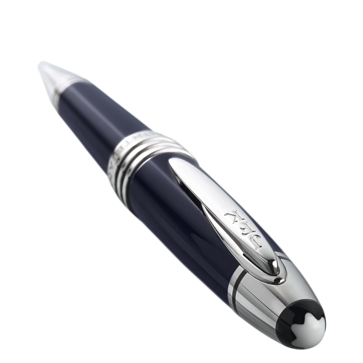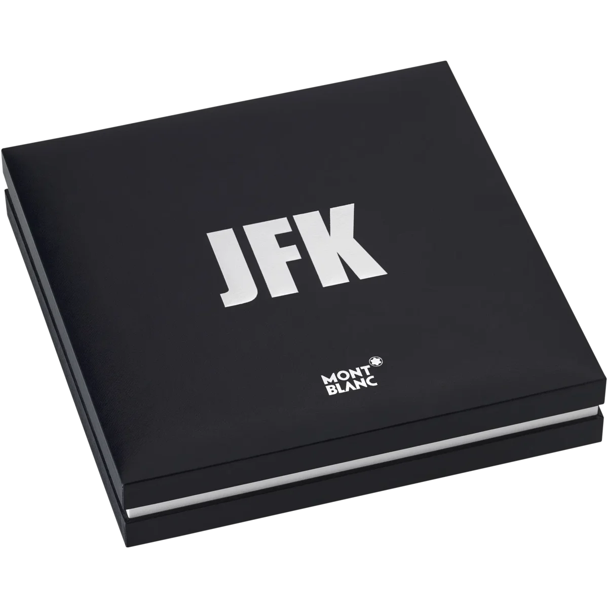 Comemorando uma das figuras mais reverenciadas da história moderna, a edição especial John F. Kennedy faz referências simbólicas à vida de J.F. Kennedy em detalhes sutis do design. A resina preciosa azul remete tanto ao tempo que Kennedy passou na Marinha dos Estados Unidos quanto ao famoso estilo Ivy League. As suas iniciais, «JFK», estão gravadas no clipe revestido de platina, e os três anéis revestidos de platina na tampa representam os três irmãos de Kennedy. A Edição Especial é coroada pelo emblema Montblanc em resina preciosa. Identificação n.º MB132089 Peso físico 56,81 g Dimensões 143,5 mm * 16,5 mm * 16,5 mm