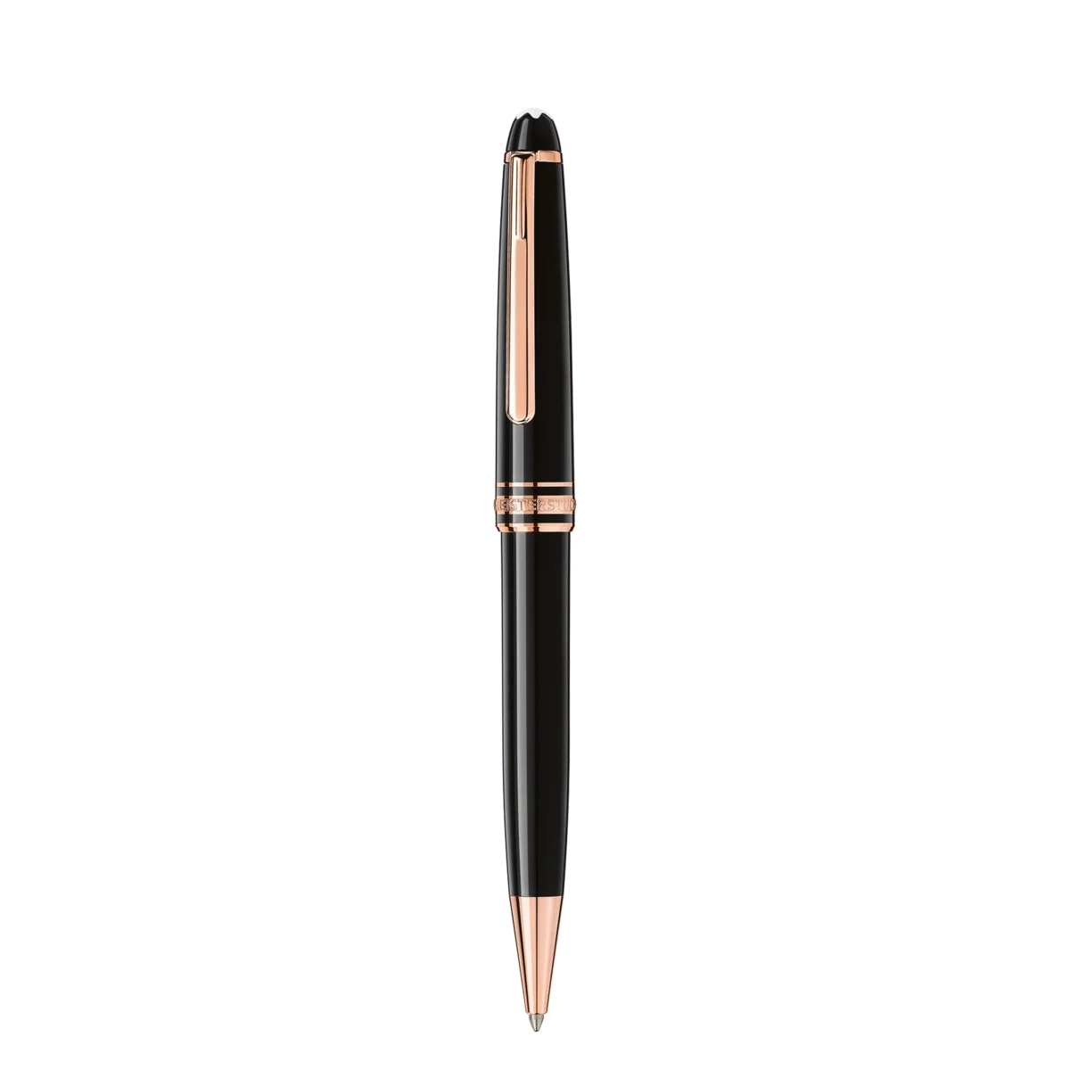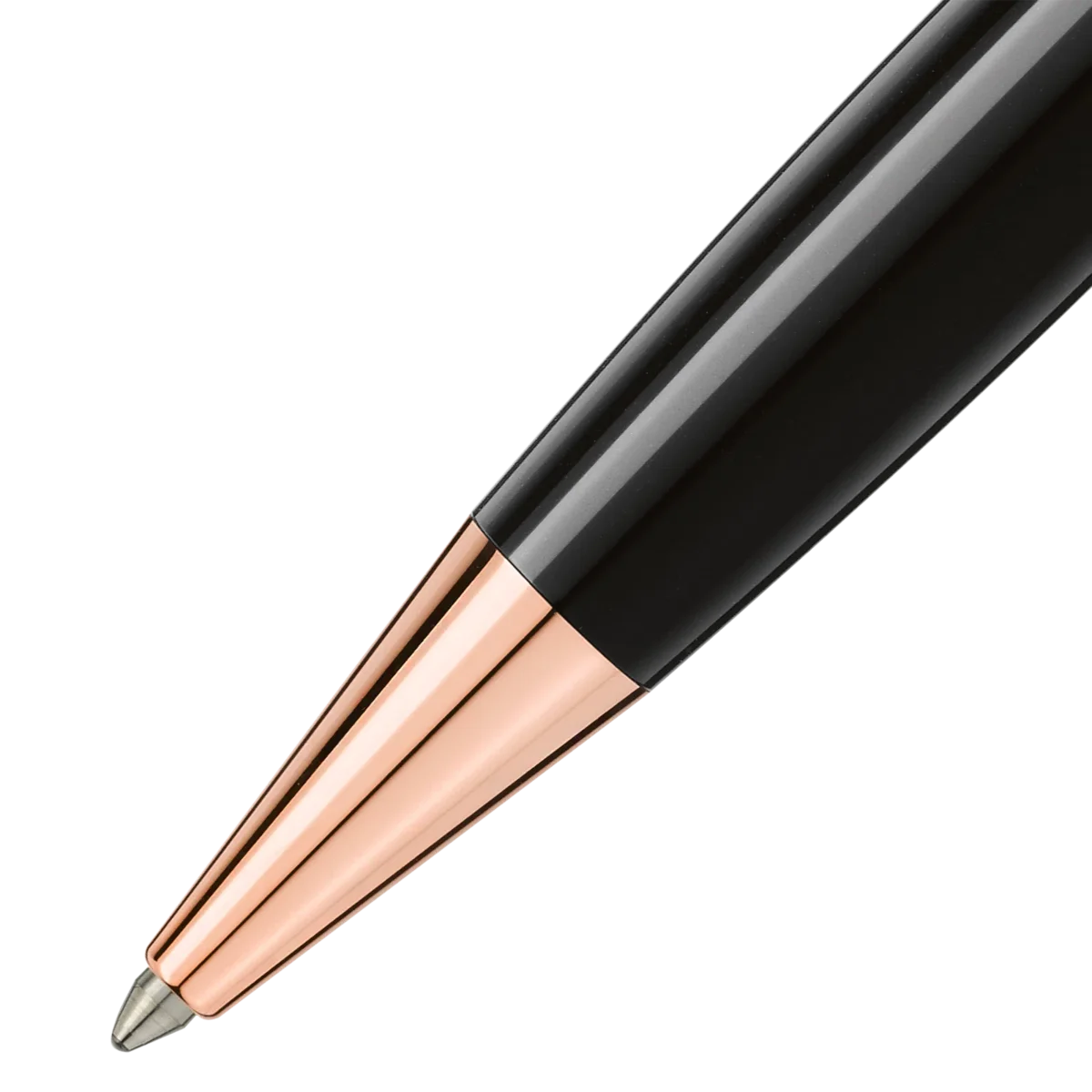 A coleção Meisterstück Classique Rose Gold-Coated da Montblanc é um design que faz história. Lançada em 1924, com um nome que significa «obra-prima», a Meisterstück tornou-se o símbolo da escrita de luxo de alta qualidade. A tampa e o corpo são fabricados em resina preciosa preta com o icónico emblema branco da Montblanc incrustado na parte superior da tampa. Identificação n.º MB132488 Peso físico 22,4 g Dimensões 137,1 mm * 12,5 mm