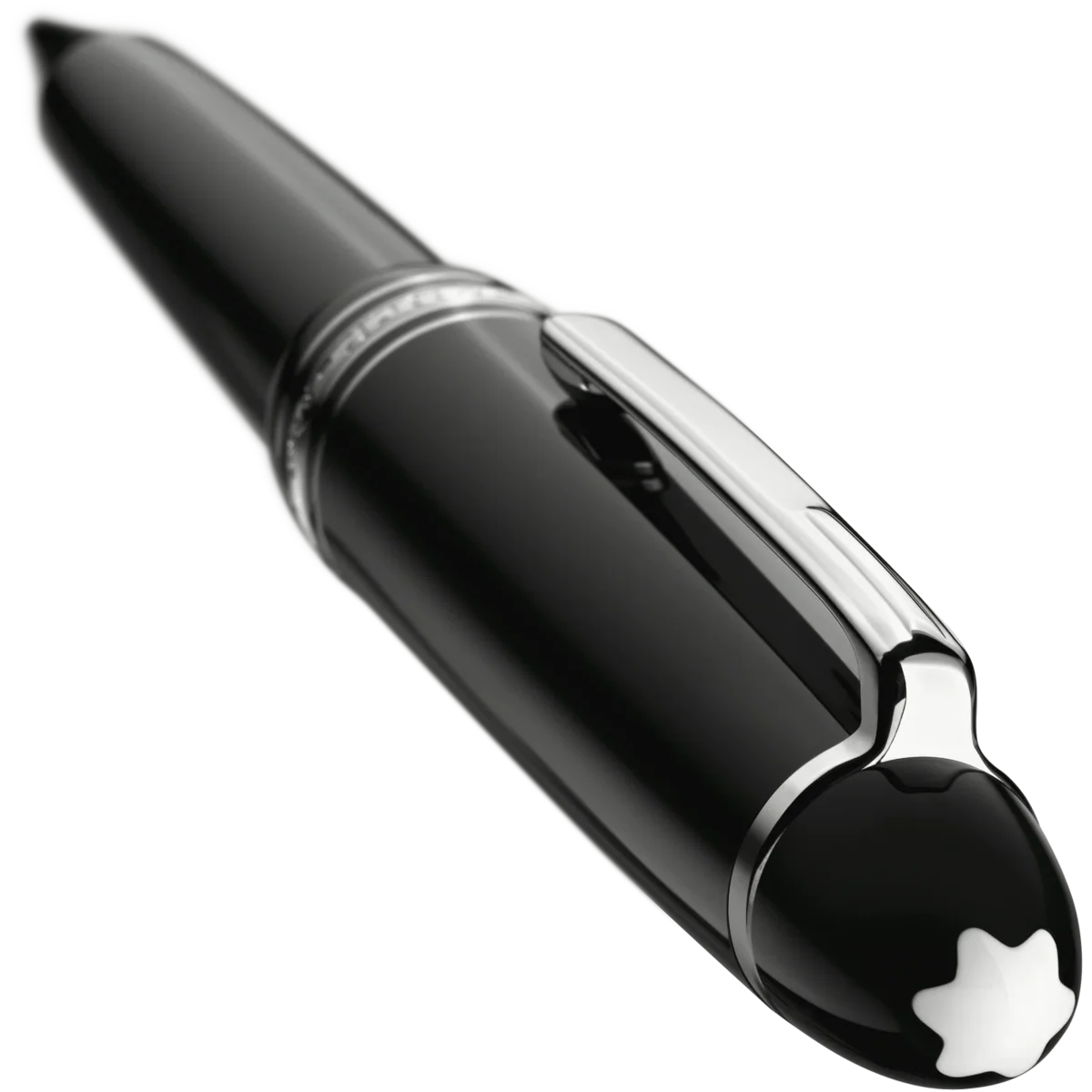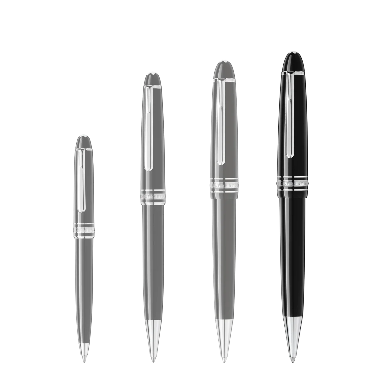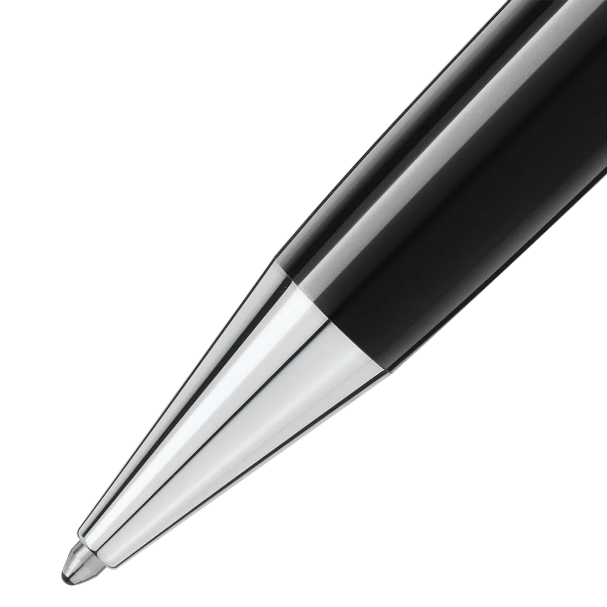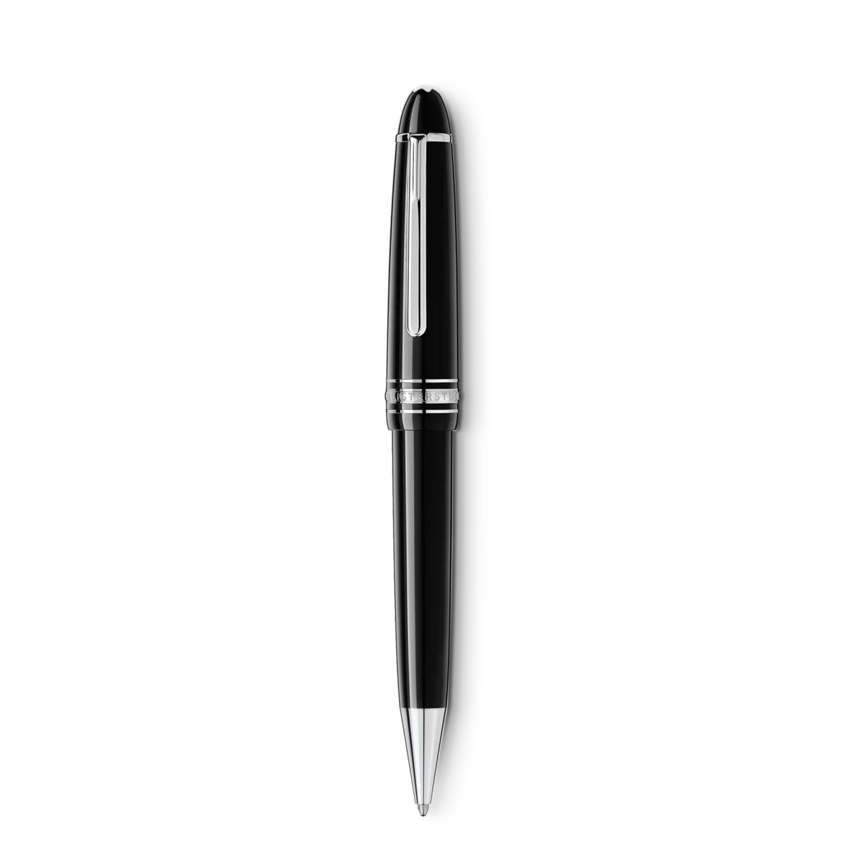 A elegante caneta esferográfica Meisterstück LeGrand evolui para um ícone de design distinto. A tampa e o corpo são fabricados em resina preciosa preta profunda, com elegantes detalhes revestidos a platina, encimados pelo emblema branco da Montblanc. Três anéis revestidos a platina com o nome da marca Montblanc gravado e um clipe revestido a platina com número de série individual enfatizam o design intemporal desta elegante caneta esferográfica. Para expressar a sua personalidade, a Montblanc oferece uma gravação gratuita de nomes ou iniciais no lado direito ou no elegante clipe revestido a platina.