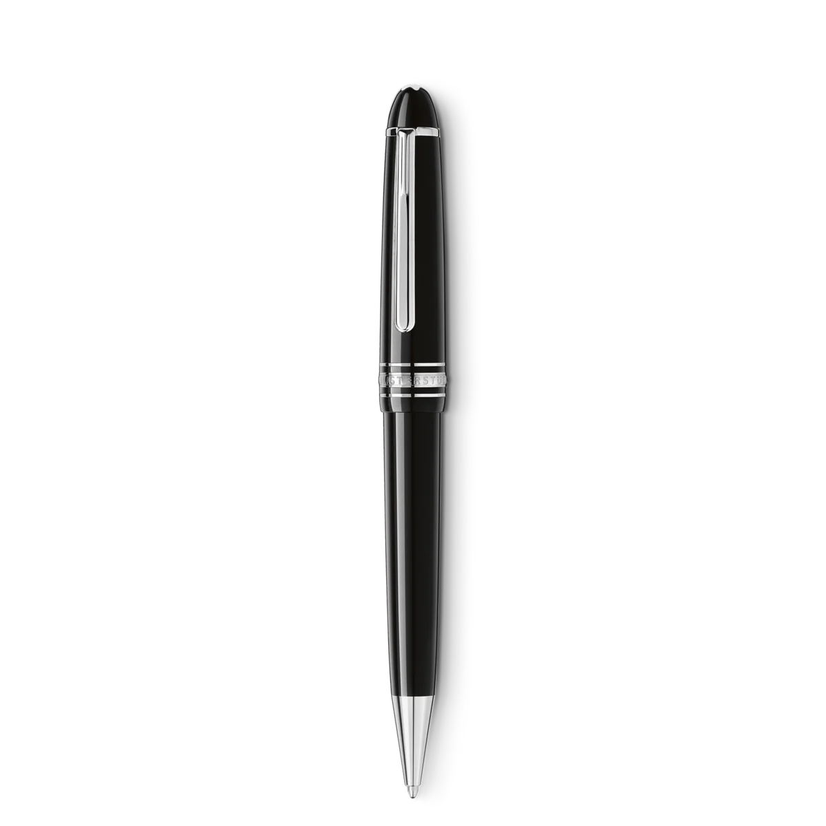 A Meisterstück Midsize em resina preciosa preta profunda com elegantes detalhes revestidos a platina, encimada pelo emblema branco da Montblanc, evolui para um ícone de design distinto. O seu tamanho situa-se entre as esferográficas LeGrand e Classique.