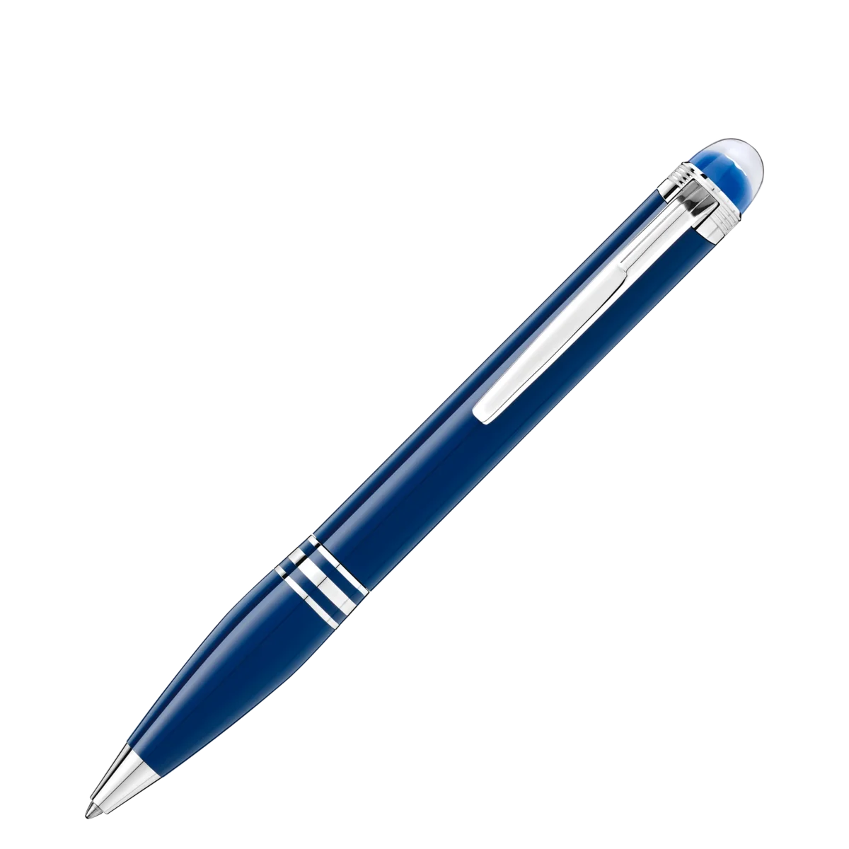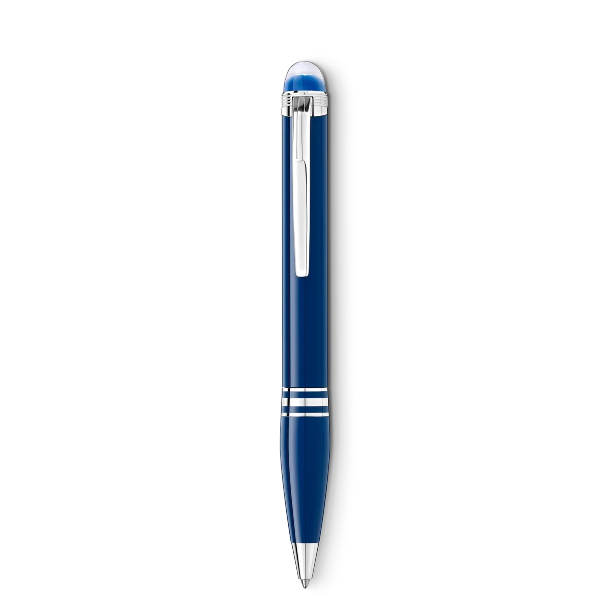 A StarWalker Blue Planet representa caminhar entre as estrelas, explorar o cosmos e galáxias distantes e fazer parte de uma das aventuras mais misteriosas e poderosas que a humanidade já empreendeu: a exploração espacial. Ao nos aproximarmos do nosso planeta Terra, inspiramo-nos na água, a fonte da vida. A tecnologia do emblema StarWalker apresenta uma cúpula azul translúcida com uma estrela flutuando no topo, que representa a Terra emergindo acima do horizonte lunar, vista da Lua. A caneta esferográfica StarWalker Precious Resin vem com acessórios revestidos a platina e um corpo e tampa em resina preciosa azul. Identificação n.º MB132441 Peso físico 31,67 g Dimensões 134,5 mm * 13,1 mm