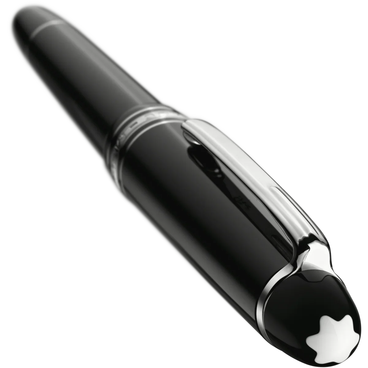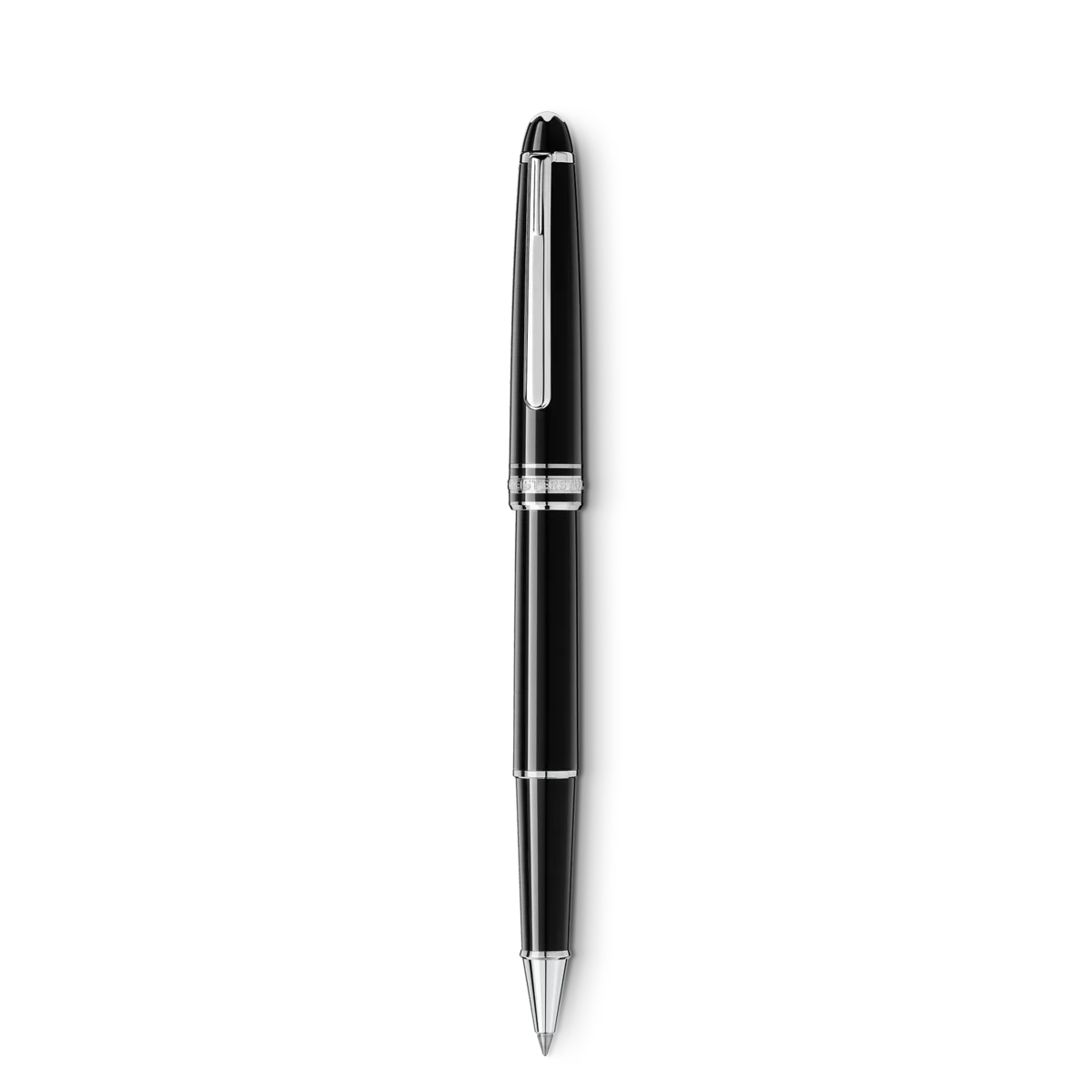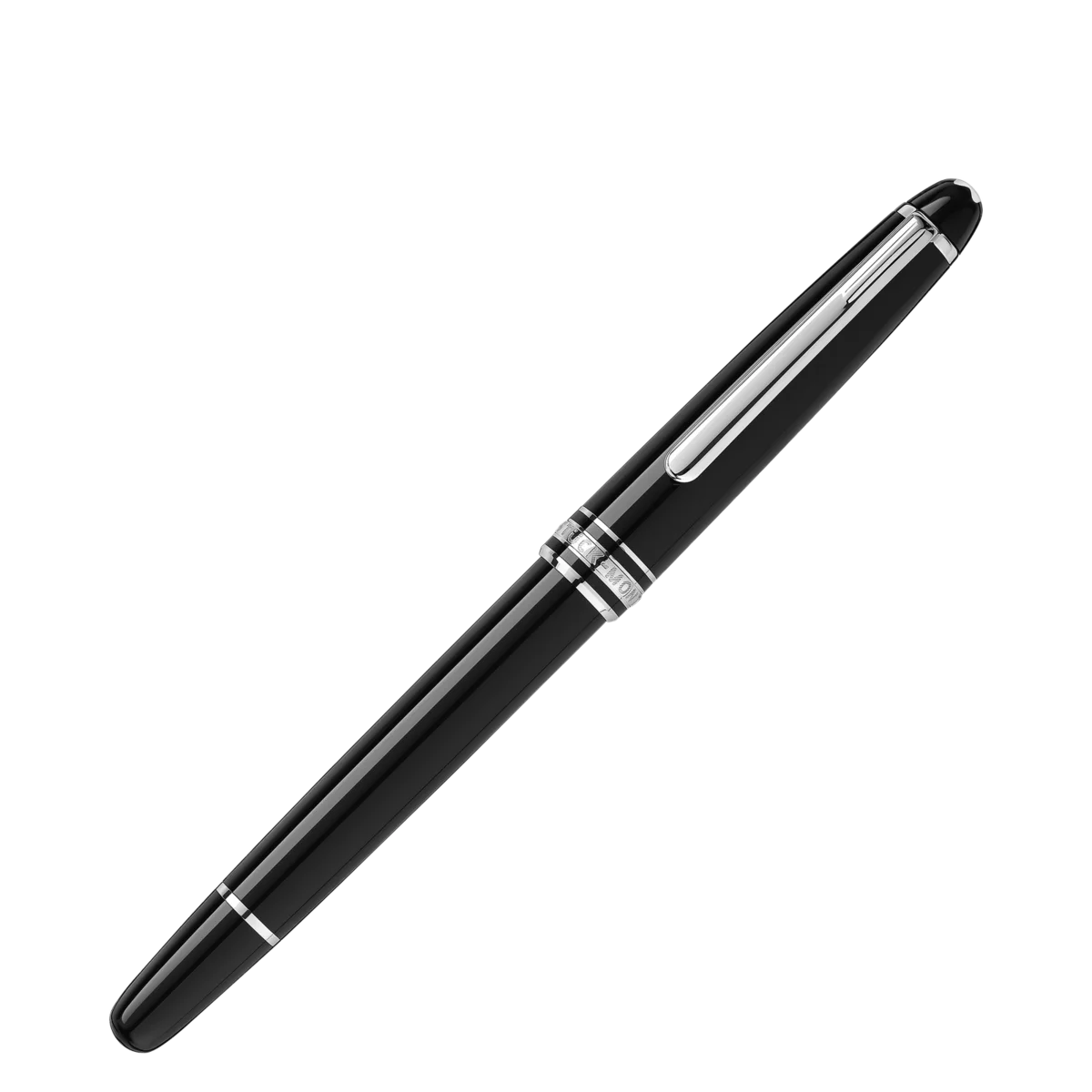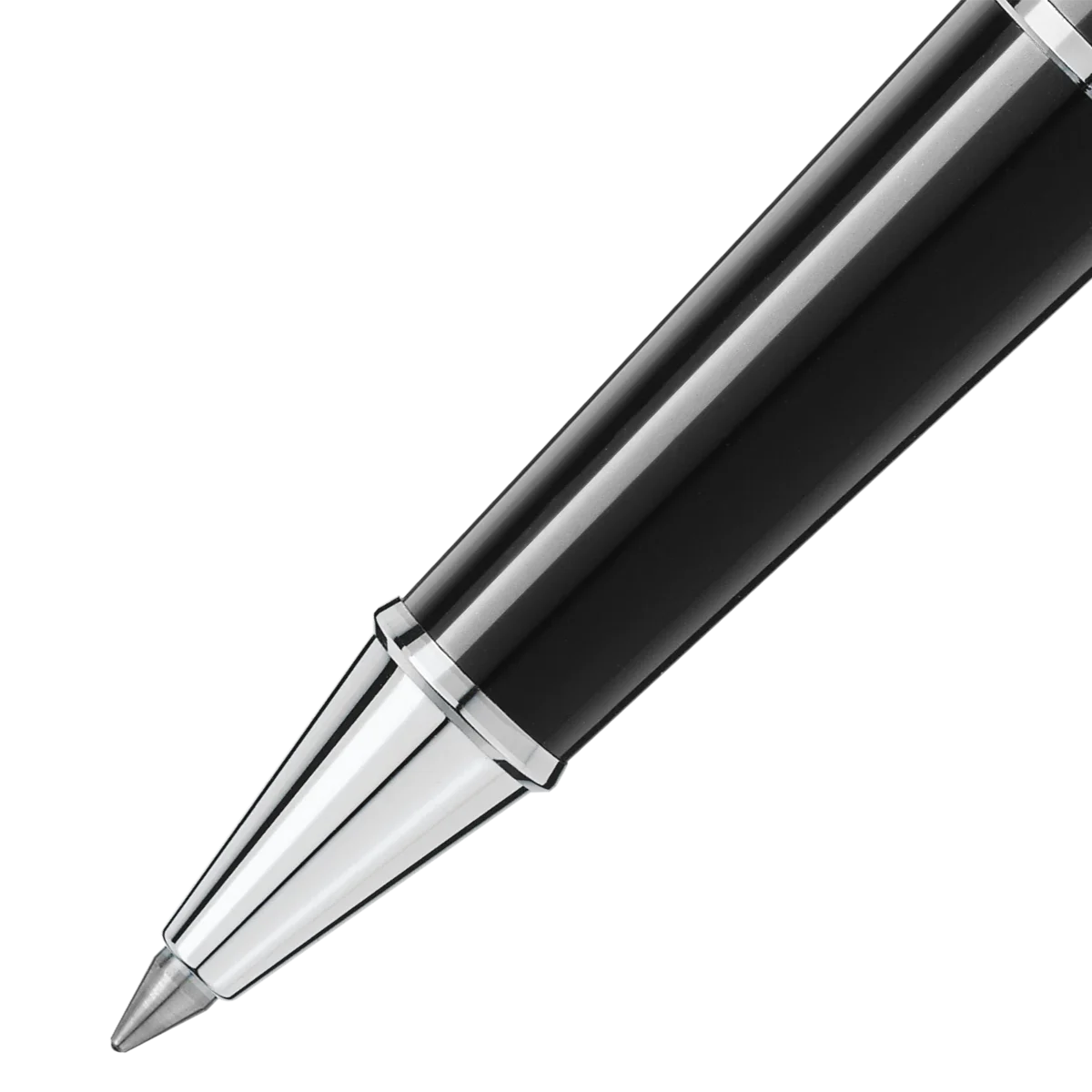 A luxuosa caneta roller Meisterstück Classique evoluiu para um ícone de design distinto. A tampa e o corpo são confeccionados em resina preciosa preta incrustada com o emblema branco da Montblanc. Três anéis revestidos a platina com a inscrição Montblanc em relevo e um clipe revestido a platina com um número de série individual enfatizam o design intemporal desta luxuosa esferográfica. Para expressar a sua personalidade, a Montblanc oferece uma gravação gratuita de nomes ou iniciais no lado direito ou no elegante clipe revestido a platina.