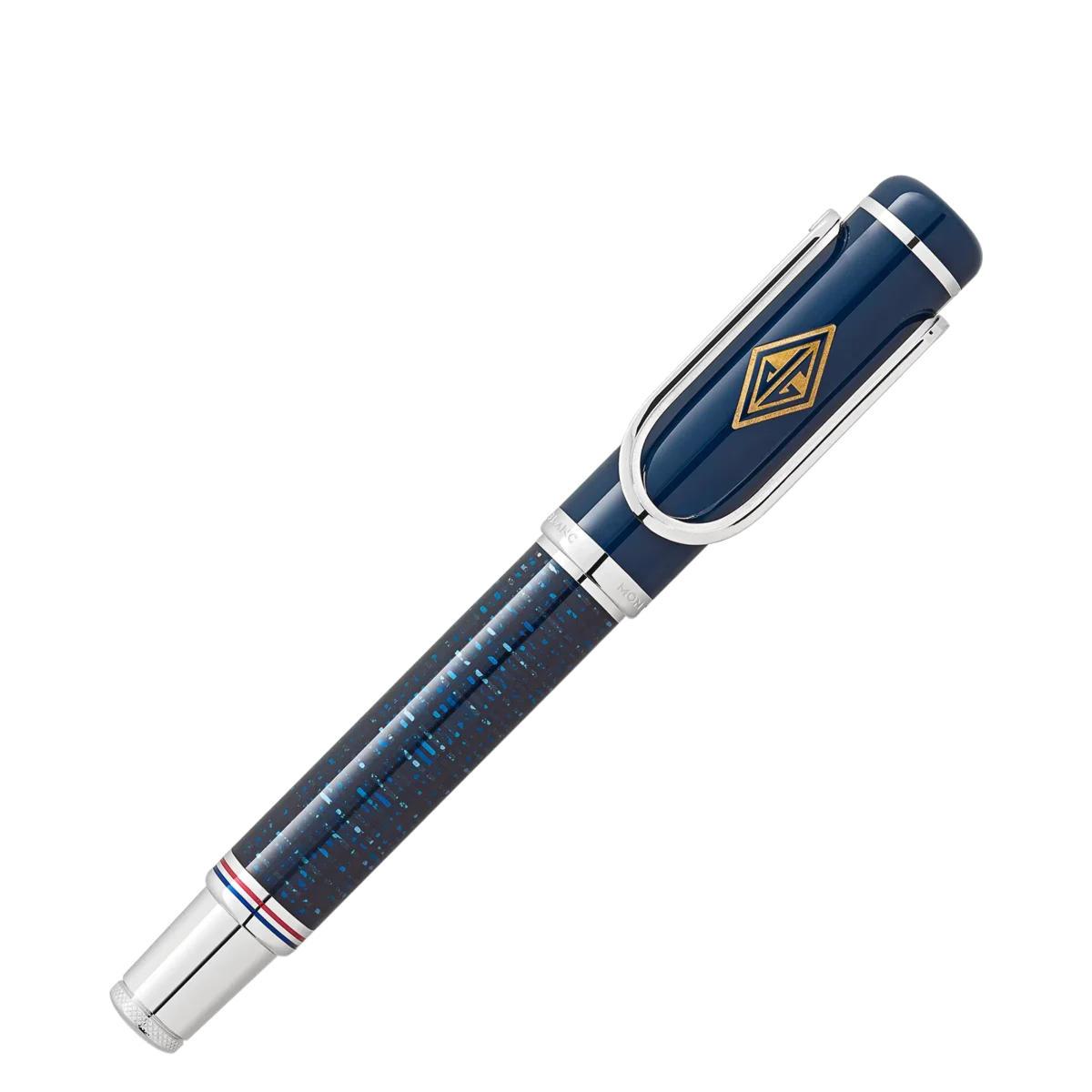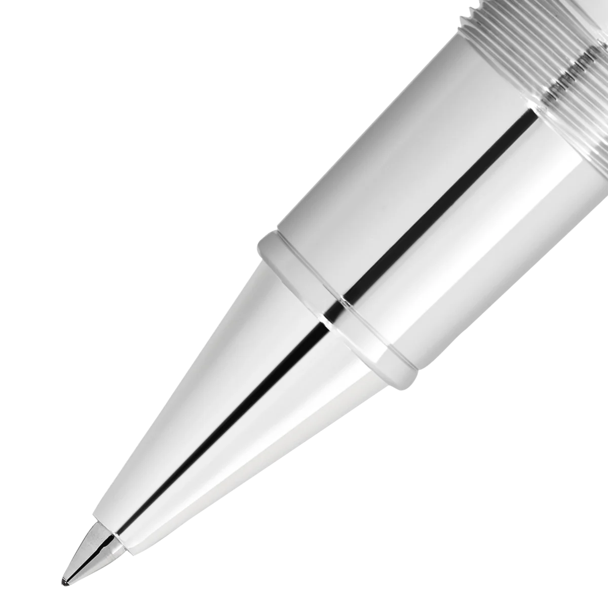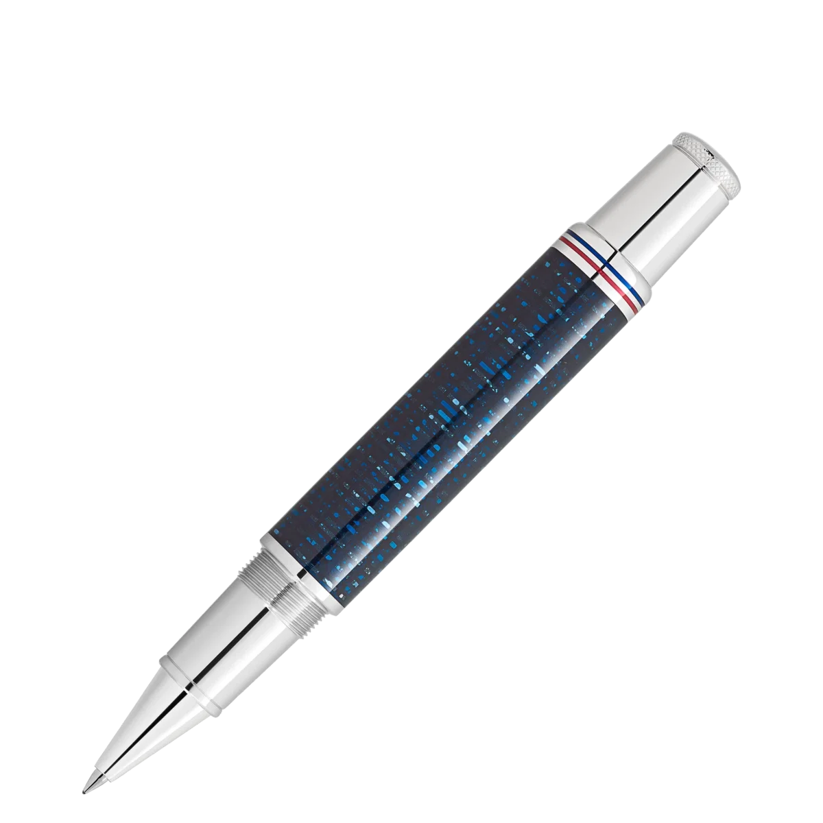 Certos romances entram para a história da literatura e, ao mesmo tempo, passam a simbolizar toda uma época. O Grande Gatsby, de F. Scott Fitzgerald, é uma dessas joias da literatura americana moderna. Publicado em 1925, o romance retrata de forma fascinante a Era do Jazz e os loucos anos 20, uma época de riqueza e autoindulgência sem precedentes. A pulsante cidade de Nova Iorque, as mansões opulentas de Long Island e as deslumbrantes festas da alta sociedade são o pano de fundo da história de Jay Gatsby, um milionário misterioso que não medirá esforços para reconquistar o amor perdido da sua juventude, Daisy Buchanan.A deslumbrante Nova Iorque da era Gatsby, onde os arranha-céus Art Déco cintilantes no céu azul do entardecer inspiraram o design da edição especial Great Characters Homage to The Great Gatsby. Criada como uma homenagem a um dos primeiros instrumentos de escrita Montblanc da era Art Déco, a superfície do corpo, trabalhada com uma técnica especial, parece refletir as fachadas iluminadas dos arranha-céus da cidade em expansão à noite. Não se trata de um dispositivo fictício, mas sim de algo que brilha como a luz verde no cais da casa de Daisy em «O Grande Gatsby»: o emblema fluorescente da Montblanc na parte superior da tampa capta e armazena luz durante o dia, para que brilhe no escuro. O poder aparente do dinheiro é simbolizado nesta edição pelo clipe revestido a platina, que tem a forma de um clipe para notas. A sua abertura arredondada é resplandecente com as iniciais de Jay Gatsby como um monograma Art Déco revestido a ouro romboidal. O mito do sonho americano e o design dos elegantes frascos de bolso do período Art Déco são referenciados pelo cone que imita a tampa de rosca gravada de um frasco e os finos anéis nas cores da bandeira americana que o circundam.