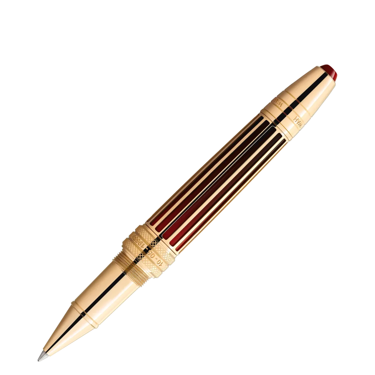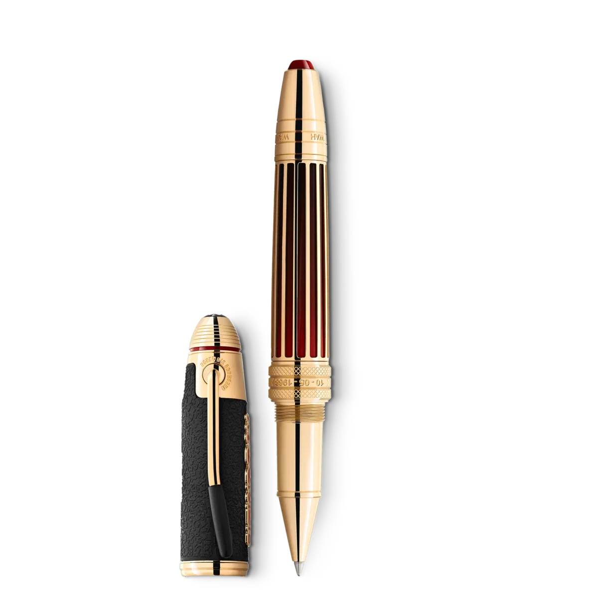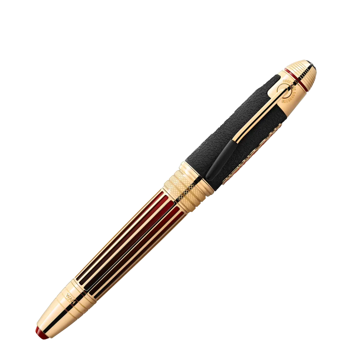 Em 2022, a Montblanc homenageia um dos músicos mais célebres do século XX, amplamente considerado um dos guitarristas elétricos mais influentes da história da música popular: Jimi Hendrix.Inspirado na capa do álbum de 1968 “Electric Ladyland”, o corpo desta Edição Limitada 1942 apresenta um verniz degradé sustentado por uma sobreposição esqueletizada. A superfície da tampa simboliza o material de um amplificador usado por Hendrix e possui um emblema em verniz. O clipe revestido a ouro amarelo é angulado para se assemelhar à barra de vibrato de uma guitarra elétrica. O emblema Montblanc na parte superior da tampa é feito de resina preciosa. Outro detalhe marcante é o anel do corpo revestido a ouro amarelo, inspirado num cabo de guitarra dos anos 60, gravado com a data de um famoso concerto de Jimi Hendrix.