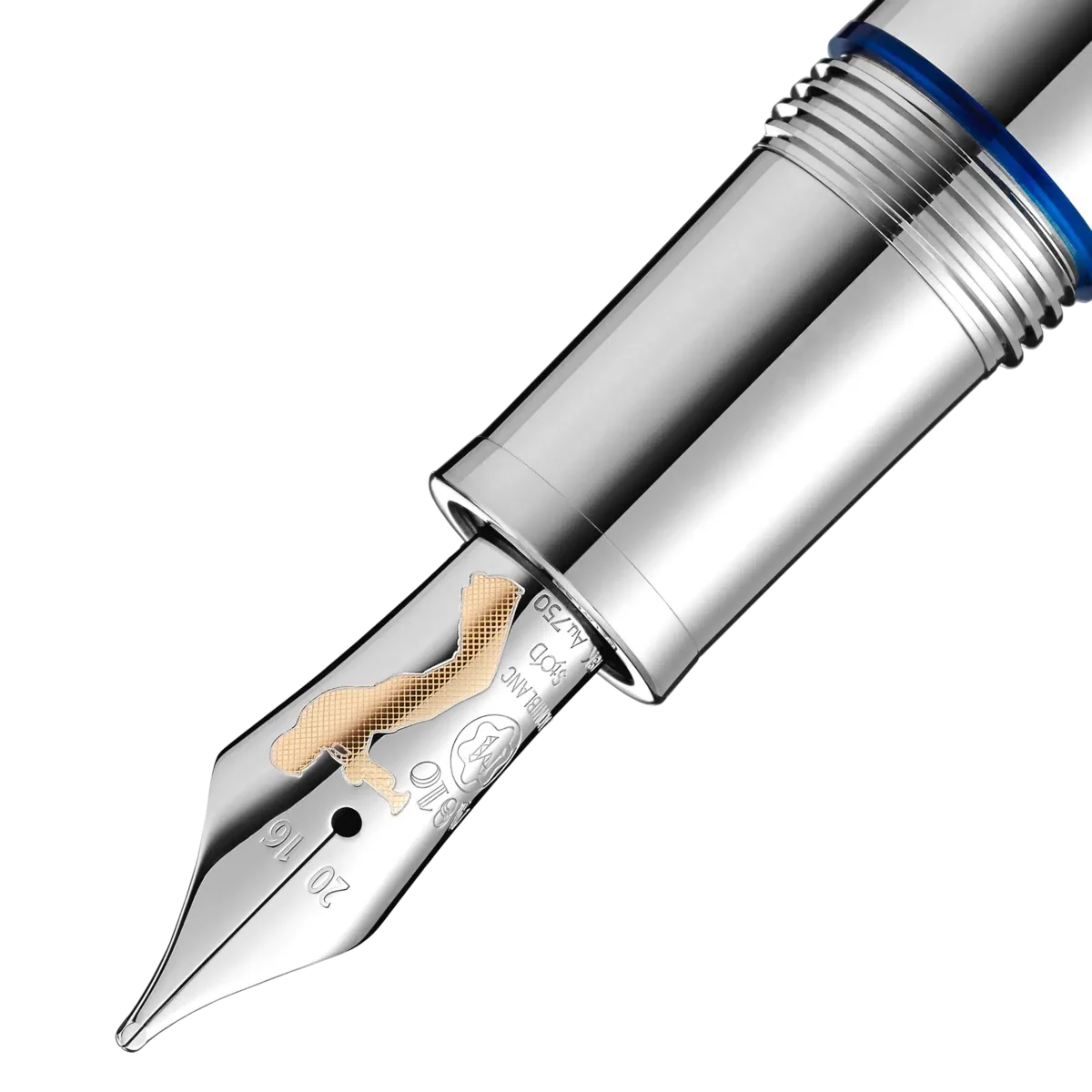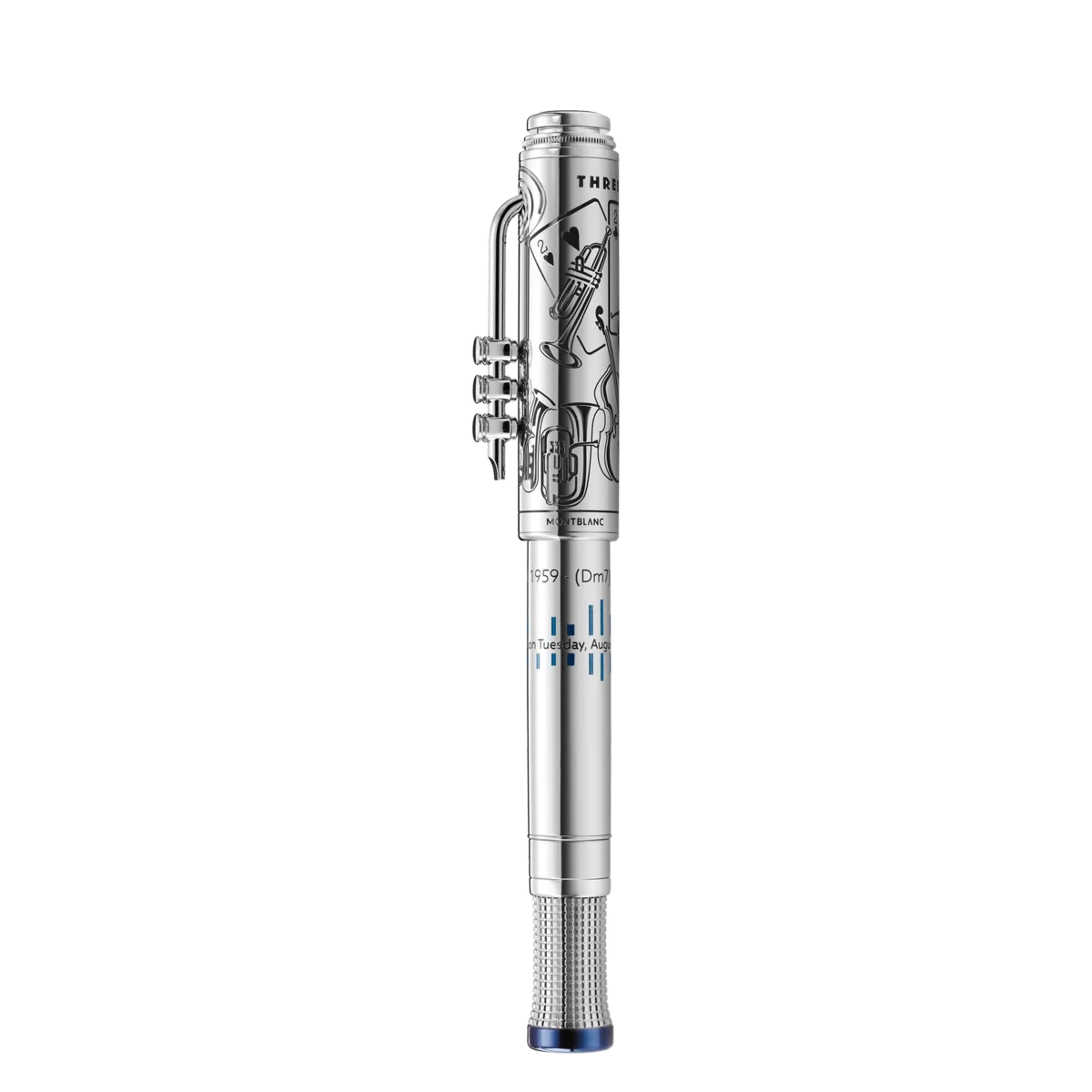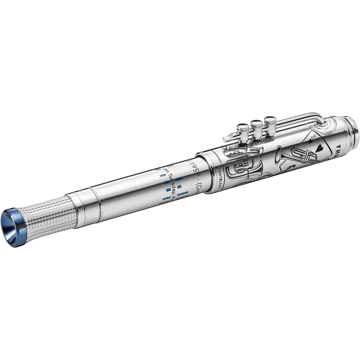 Esta edição Great Characters homenageia um dos músicos de jazz mais revolucionários e influentes de todos os tempos: Miles Dewey Davis. Ele não era apenas um trompetista com um som excepcional, mas também um pioneiro em praticamente todas as fases da evolução do jazz americano pós-Segunda Guerra Mundial, do cool jazz à fusão de rock-jazz-funk que levou à sua introdução no Rock & Roll Hall of Fame. A forma geral da Edição Limitada 1926 reflete o trompete, enfatizado pelos botões dos dedos do trompete no clipe. A gravação refinada e única no corpo é inspirada nas principais fases da evolução do jazz americano pós-Segunda Guerra Mundial, influenciadas por Miles Davis. O cone azul lembra «Kind of Blue», o maior álbum de jazz de todos os tempos. A forma do cone deriva do bocal especial «Heim» que ele usava para tocar. A ponta está gravada com a sua silhueta e a limitação de 1926 peças reflete o ano do seu nascimento. Identificação n.º MB114191 Peso físico 88,65 g Dimensões 145 mm * 16 mm * 16 mm