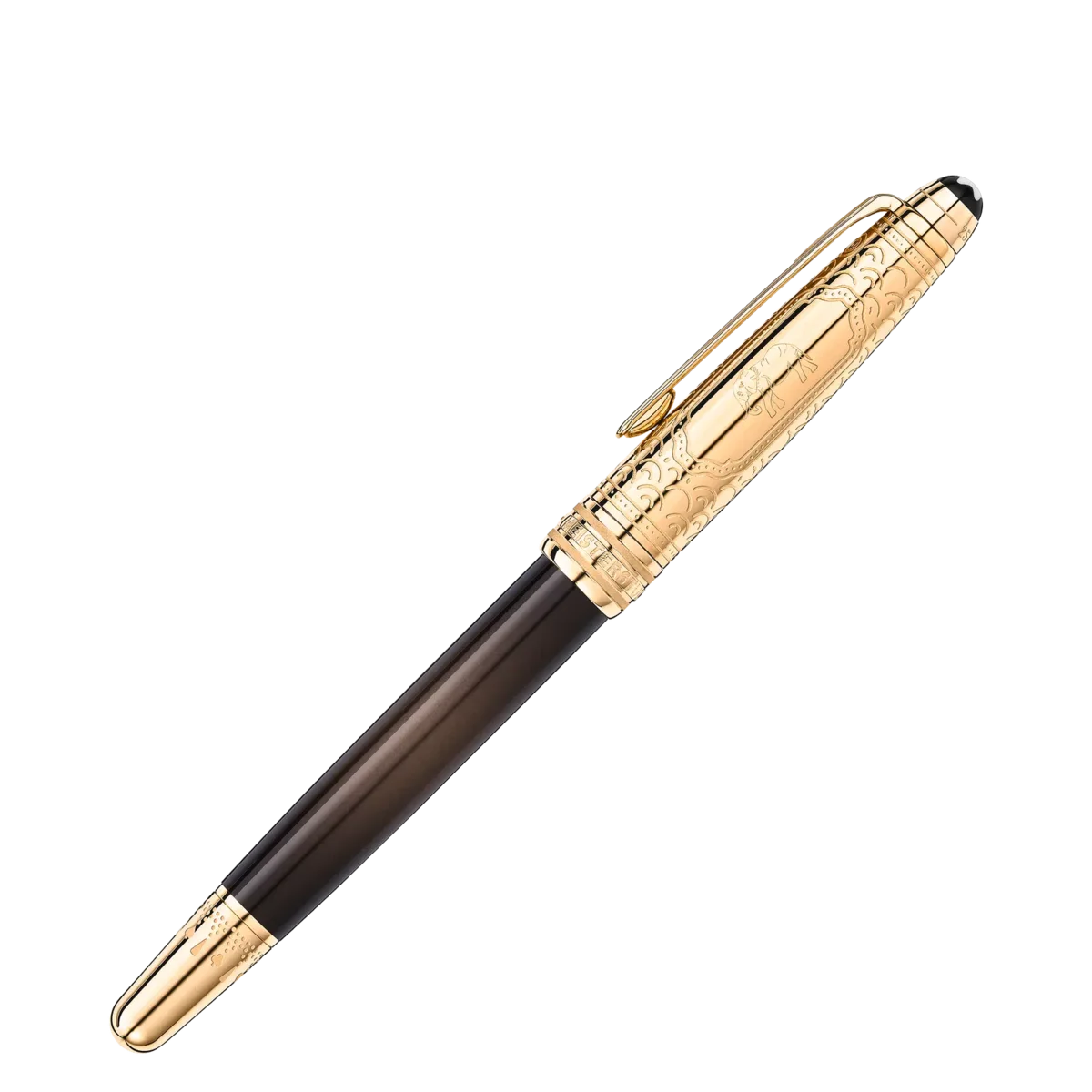 A coleção Meisterstück Around the World in 80 Days é inspirada no famoso romance de aventura de Júlio Verne. A esferográfica Doué Classique com tampa metálica revestida a ouro e corpo lacado em antracite degradé inspira-se na segunda etapa da viagem, de Bombaim a Yokohama. Nesta parte da aventura, os protagonistas viajam num majestoso elefante, que aparece representado numa cartela na tampa. A tampa metálica revestida a ouro apresenta um padrão gravado que simboliza boa sorte. O clipe apresenta um naipe de diamantes lacado a vermelho e o cone está gravado com um padrão e naipes, representando a aposta do Sr. Fogg de fazer a viagem em 80 dias. A parte superior da tampa está gravada com a duração da viagem, 25 dias de Bombaim a Yokohama e 80 dias no total.