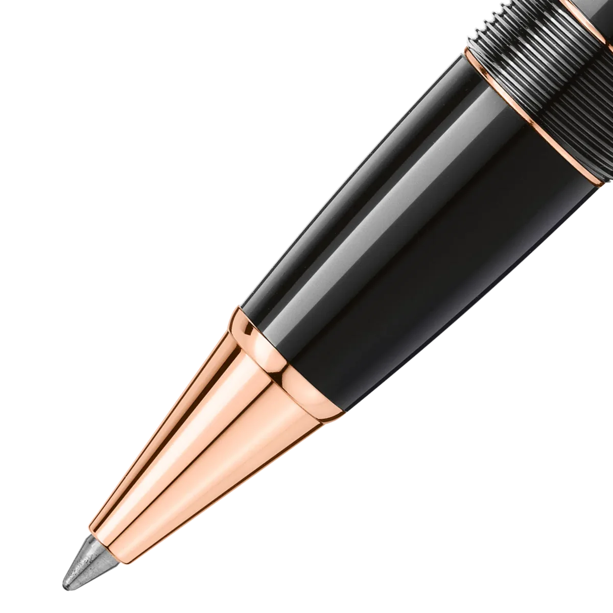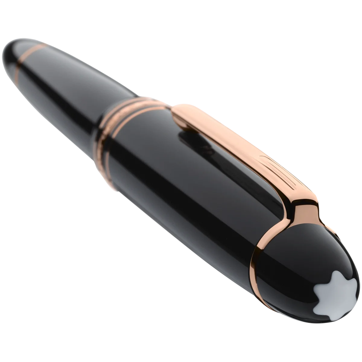 A coleção Meisterstück LeGrand com revestimento em ouro rosa da Montblanc é um design que faz história. Lançada em 1924, com um nome que significa «obra-prima», a Meisterstück tornou-se o símbolo da escrita de luxo de alta qualidade. A tampa e o corpo são fabricados em resina preciosa preta com o icónico emblema branco da Montblanc incrustado na parte superior da tampa. Identificação n.º MB132481 Peso físico 35,91 g Dimensões 145,3 mm * 15,5 mm
