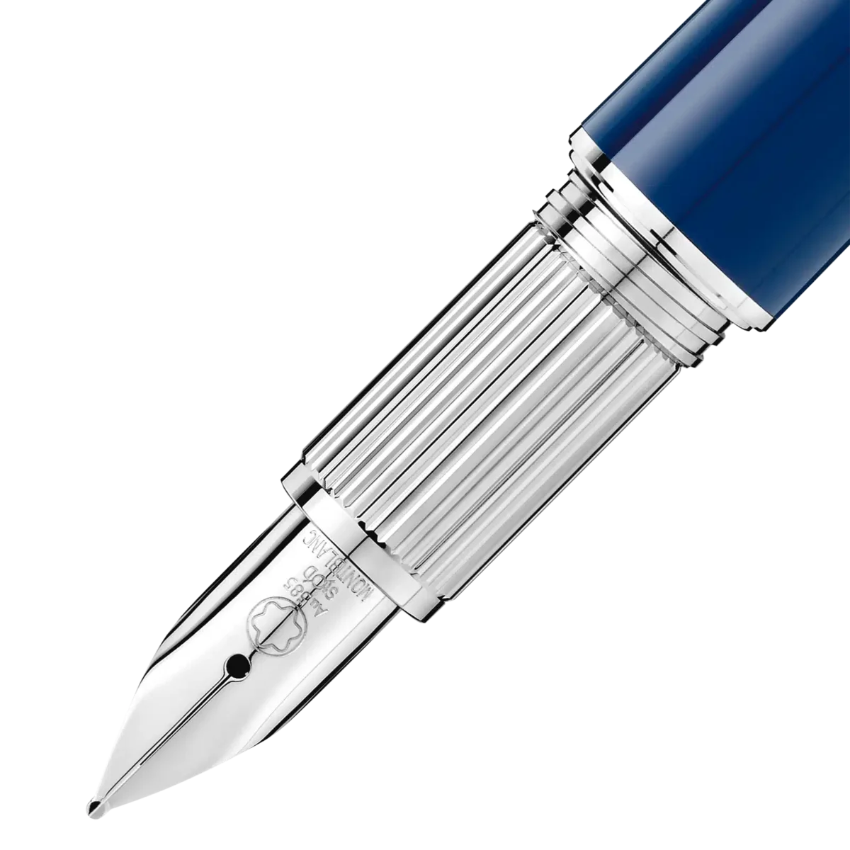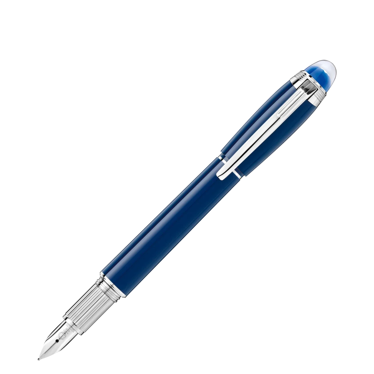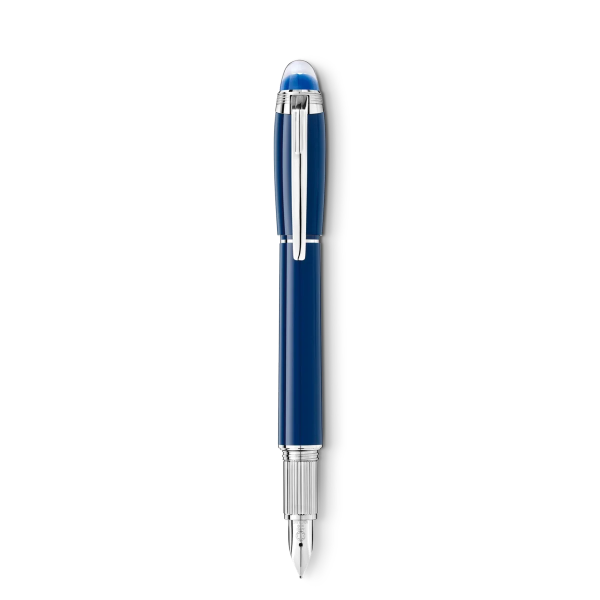 A StarWalker Blue Planet é sobre caminhar entre as estrelas, explorar o cosmos e galáxias distantes e fazer parte de uma das aventuras mais misteriosas e poderosas que a humanidade já empreendeu: a exploração espacial. Ao nos aproximarmos do nosso planeta Terra, inspiramo-nos na água, a fonte da vida. A tecnologia do emblema StarWalker apresenta uma cúpula azul translúcida com uma estrela flutuando no topo, que representa a Terra emergindo acima do horizonte lunar, vista da Lua. A StarWalker Precious Resin vem com acessórios revestidos de platina e um corpo e tampa em resina preciosa azul. A caneta-tinteiro é feita à mão com uma ponta de ouro Au585 / 14K revestida a ródio. Identificação n.º MB132439 Peso físico 25,43 g Dimensões 135,7 mm * 14,9 mm