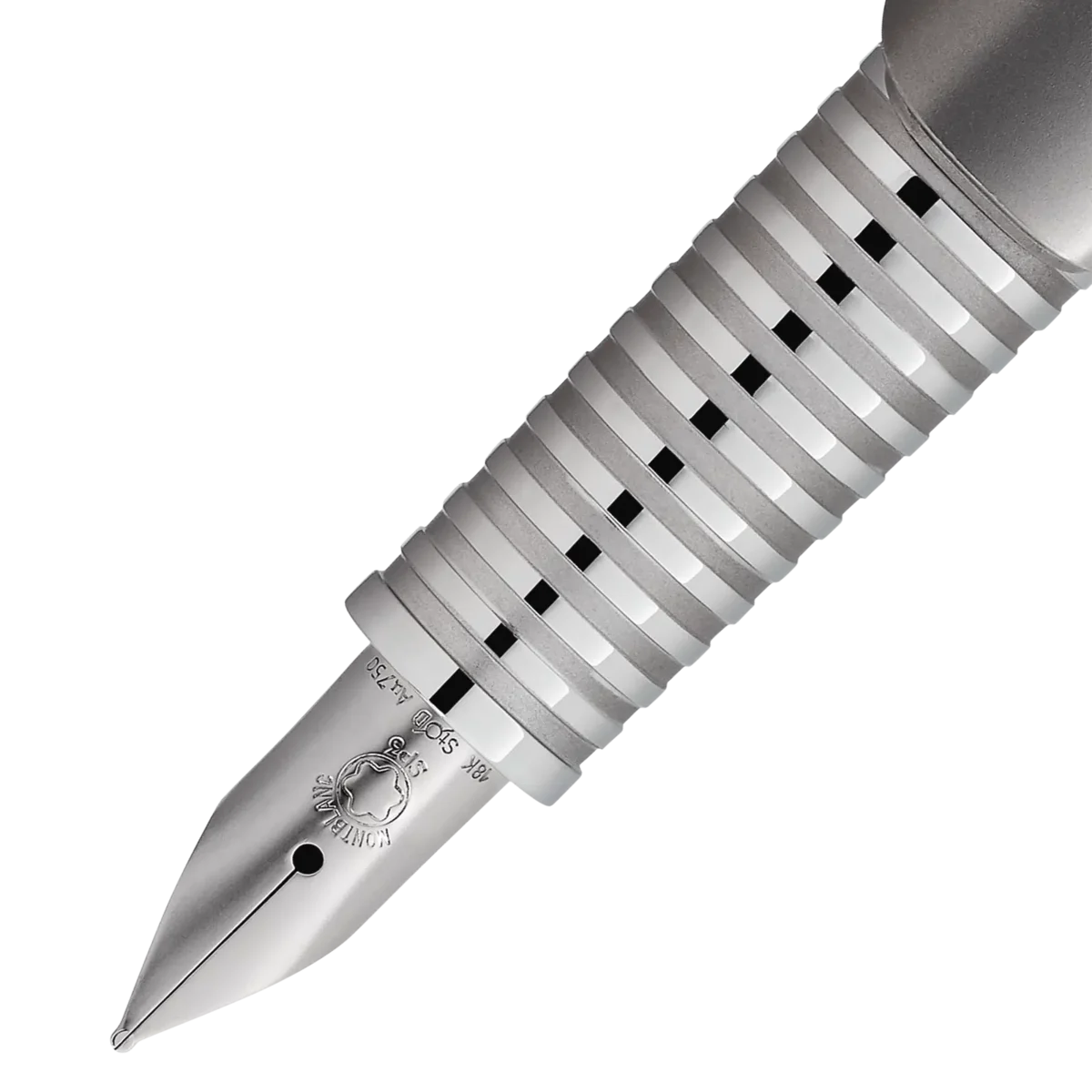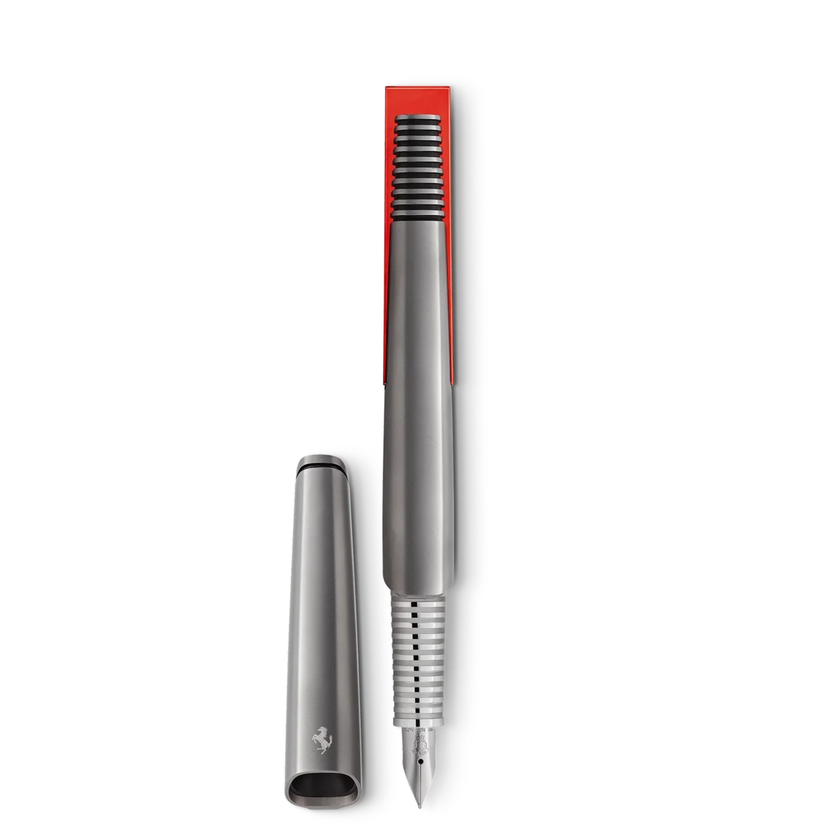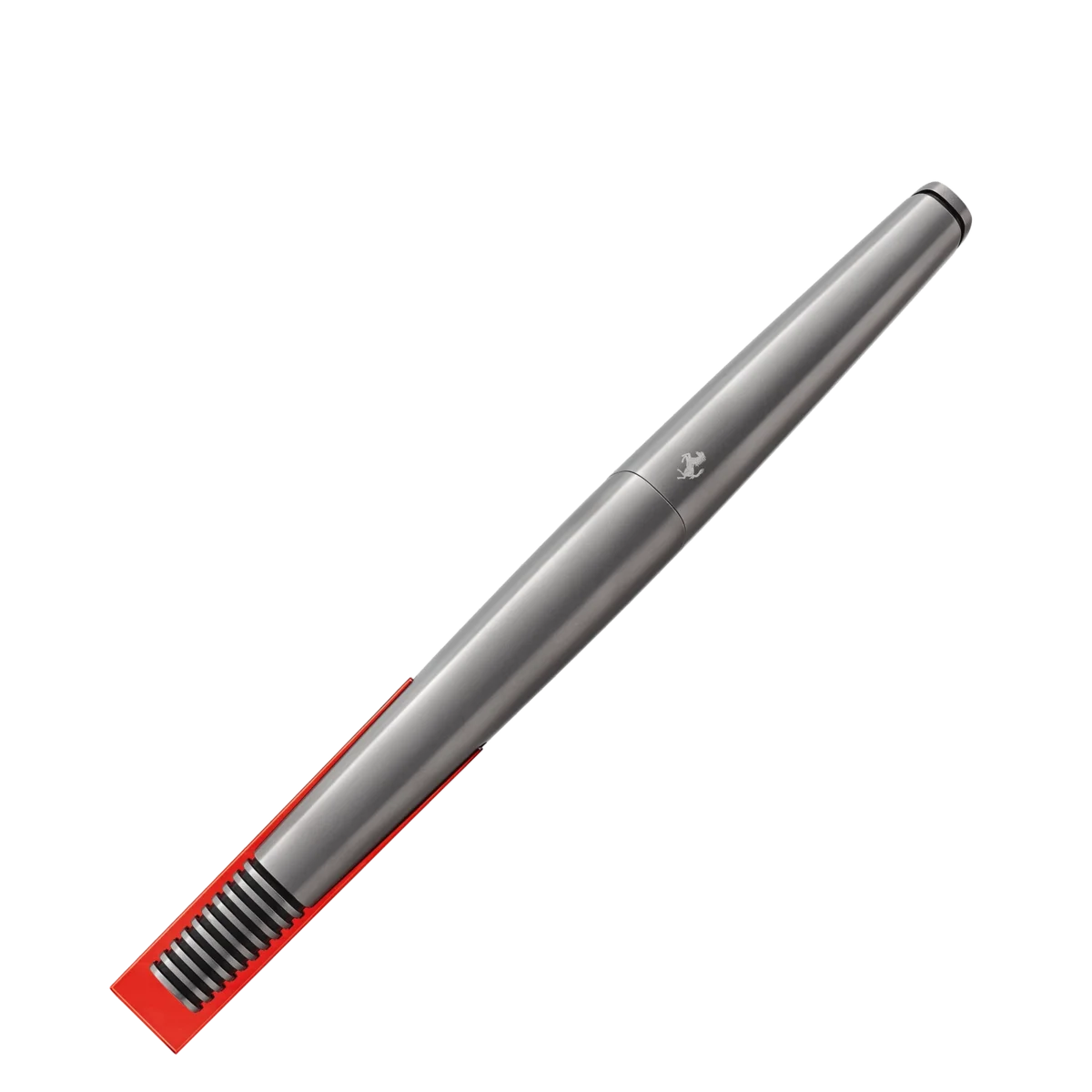 A equipa de corridas da Ferrari conquistou uma vitória surpreendente ao ocupar os três primeiros lugares na corrida 24 Horas de Daytona em 1967. Este momento espetacular é celebrado no novo modelo Daytona SP3, parte da gama Icona da Ferrari, que presta homenagem à profunda tradição da empresa no mundo das corridas. Capturando a essência do espírito do SP3, a Maison colaborou com o Ferrari Design Center e o diretor de design Flavio Manzoni na Stilema SP3, uma extensão impressionante do design inovador. A Montblanc Ferrari Stilema SP3 expressa a forma fluida do carro através do uso de um único material para a tampa e o corpo: titânio leve, raramente visto nos instrumentos de escrita Montblanc. O ângulo da parte superior da tampa imita a forma como o nariz do Ferrari Daytona SP3 corta o ar, enquanto os detalhes alinhados na parte dianteira e no corpo são derivados das lâminas nos para-choques do carro, onde as linhas criam um jogo visual de luz e escuridão com barras que parecem desaparecer. Incorporando as linhas leves do Ferrari Daytona SP3, este mecanismo de enchimento de tinta foi escondido sob uma lâmina vermelha semitransparente que corta o corpo de titânio. Feito em ouro branco maciço para esta edição, o mecanismo só pode ser revelado puxando a lâmina para trás. Quando o reservatório está cheio de tinta e a lâmina está travada no lugar, a Montblanc Ferrari Stilema SP3 está pronta para a linha de partida e pronta para escrever. A ponta em ouro branco maciço Au750 apresenta uma gravação especial «SP3», e o icónico cavalo empinado da Ferrari também está gravado a laser na tampa. O emblema Montblanc que, por tradição, se encontra no topo da tampa é igualmente fabricado em ouro branco maciço Au750. O instrumento de escrita vem com uma bolsa para caneta especialmente concebida, fabricada em couro Meisterstück macio e forro Alcantara, contrastando com costuras vermelhas brilhantes. Identificação n.º MB131973 Peso físico 121,5 g