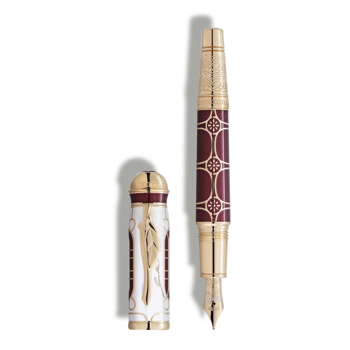No centro do despertar intelectual do século XVIII estava um homem em particular cuja obra escrita resistiu ao teste do tempo: Johann Wolfgang von Goethe. Polímata, gigante da literatura alemã, advogado, ministro do governo, diretor de teatro, além de colecionador e naturalista prodigioso, ele era, em todos os sentidos, um revolucionário, empenhado em expandir os limites da percepção e do conhecimento. Impulsionado por uma sede insaciável de conhecimento, sua versatilidade criativa não conhecia limites. A profundidade filosófica de Fausto, a subtileza lírica da sua poesia e a amplitude da exploração científica por trás da sua teoria das cores e tratados botânicos foram de importância histórica e atestam, na sua variedade e influência de longo alcance, o génio de Goethe. Como poeta e estadista, conselheiro, amigo e amante, ele deixou uma marca indelével no mundo à sua volta e serve até hoje como fonte de inspiração e visão. Com o apoio da Klassik Stiftung Weimar e do Museu Nacional Goethe que ela abriga, a Montblanc dedica a sua Writers Edition Homage to Johann Wolfgang von Goethe Limited Edition 1808 a este gênio universal, com foco especial no seu papel como estadista. Goethe moldou a sua época com palavras e ações. A maior edição de suas obras completas e escritos compreende atualmente 40 volumes, contendo cerca de 3.000 poemas. A sua peça Götz von Berlichingen foi publicada anonimamente em 1773, mas apenas um ano depois, Os Sofrimentos do Jovem Werther, escrito em menos de quatro semanas, catapultou o advogado de 25 anos para a fama da noite para o dia. A sua reputação não passou despercebida em Weimar, onde o jovem duque, Karl August, estava empenhado em transformar o seu ducado numa «Corte das Musas». A mudança de Goethe para Weimar marcou um ponto de viragem na sua vida. Aqui, ele já não era visto apenas como um poeta e filósofo de renome, mas também atuava como estadista e reformador, reativando a tradição da mineração de prata, reorganizando a política económica e fiscal e ascendendo rapidamente para se tornar conselheiro-chefe do duque. Goethe foi nobre em 1782 em reconhecimento pelos seus serviços à corte de Weimar e, em 1816, recebeu a Ordem do Falcão Branco, também conhecida como Ordem da Vigilância. Este emblema em forma de estrela foi a inspiração por trás do enfeite revestido a ouro no corpo da Edição Limitada. A laca vermelha carmim por baixo remete para a cor da faixa cerimonial usada por Goethe no retrato de Gerhard von Kügelgen. O padrão em ouro traçado à volta da tampa assemelha-se aos arcos redondos que se destacam numa gravura de Rembrandt adaptada para o frontispício do «fragmento de Fausto» de Goethe, de 1790. A figura de Fausto ocupou Goethe durante quase toda a sua vida. Ele escreveu uma versão inicial, Urfaust, depois um Fragmento e, finalmente, o seu drama mundialmente famoso, Fausto I, publicado em 1808. Insuperável em sua eloquência e significado global, este drama é uma verdadeira obra-prima da literatura mundial. O próprio Goethe cunhou o termo «literatura mundial», usando-o para significar uma expressão de universalidade, transcendendo todas as barreiras linguísticas, étnicas e temporais. Como símbolo do conceito de «literatura mundial» de Goethe, a tampa tem a forma de um globo, coroado pelo emblema Montblanc. A forma ligeiramente curvada da tampa, que se assemelha a um frasco de vidro histórico de químico, é uma homenagem às realizações de Goethe como cientista e colecionador. O clipe em forma de folha e a assinatura gravada homenageiam os seus estudos extraordinários no campo da morfologia e, especificamente, a sua proposição de uma forma vegetal arquetípica. Ele até transpôs essa ideia para a poesia no seu poema didático de amor A Metamorfose das Plantas. Esta e todas as suas outras reflexões e descobertas foram registadas em papel usando o tipo de instrumentos de escrita preciosos que inspiraram o visual histórico de toda a Writers Edition. Ao contrário do próprio Goethe, cujos estudos serviram para aprofundar a investigação científica, a sua contraparte ficcional era atormentada pela dúvida. Fausto, não conseguindo atingir os seus próprios objetivos académicos, volta-se para a magia, invocando o «Espírito da Terra». A cena dramática em que a luz que irradia dessa presença avassaladora enche a câmara foi capturada num dos esboços do próprio Goethe, modelo para a gravura na ponta do cone. Enquanto outras gravuras ao redor do cone foram emprestadas dos enfeites do seu certificado de nomeação como Conselheiro Privado da Legação em Weimar, a ponta sólida em ouro Au 750 é adornada com uma das principais cenas de Fausto: Mefistófeles, voando acima da cidade noturna, como na ilustração original de Eugène Delacroix. As letras e a data acima dela lembram a data de publicação de Fausto em Leipzig. Um fragmento em 1790. Em homenagem ao ano de publicação de Fausto I, um marco no teatro alemão e uma das peças mais traduzidas e encenadas no mundo, a edição limitada é composta por apenas 1808 peças.