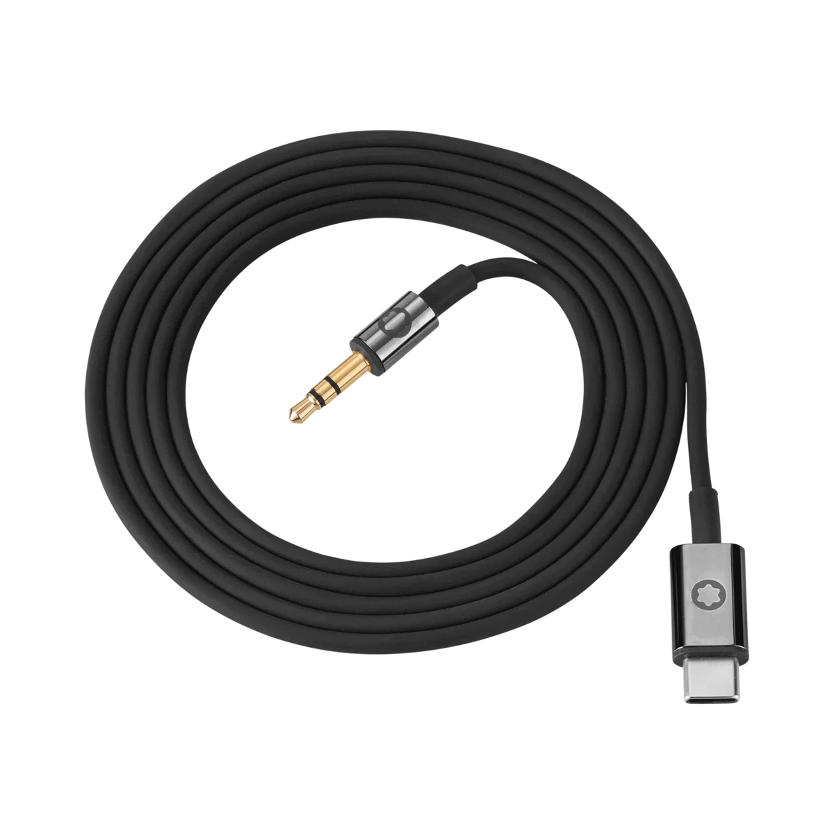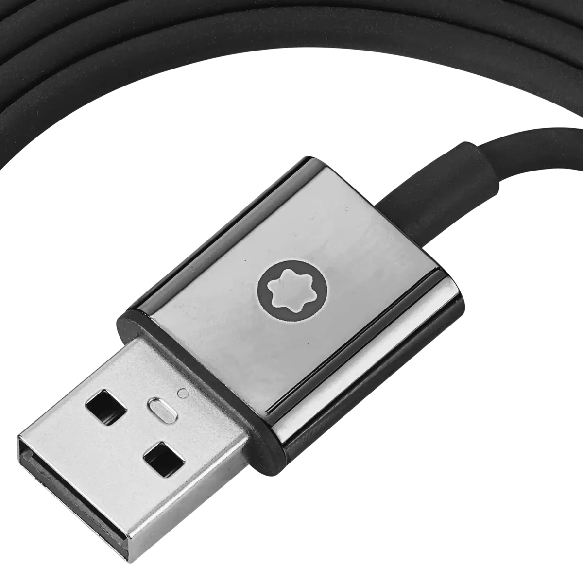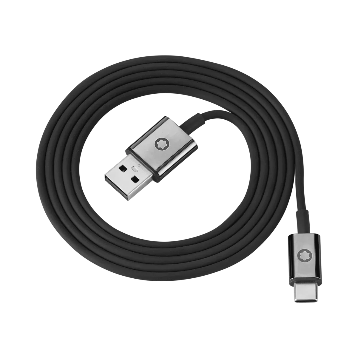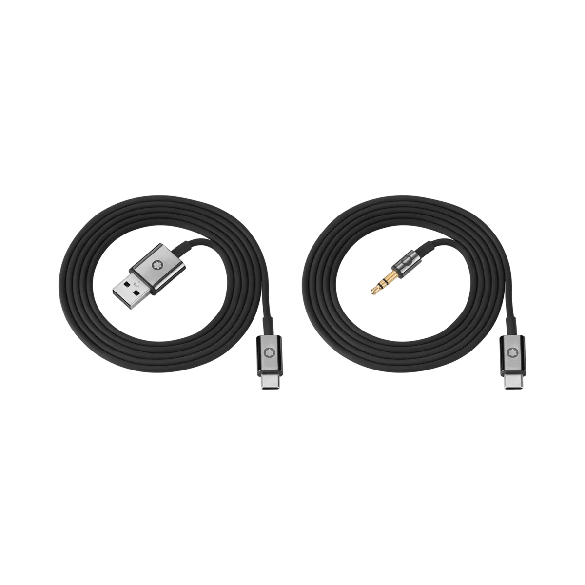 Conjunto de cabos extra para os seus auscultadores Montblanc MB 01, contendo um cabo de carregamento USB-C preto e um cabo de áudio preto.