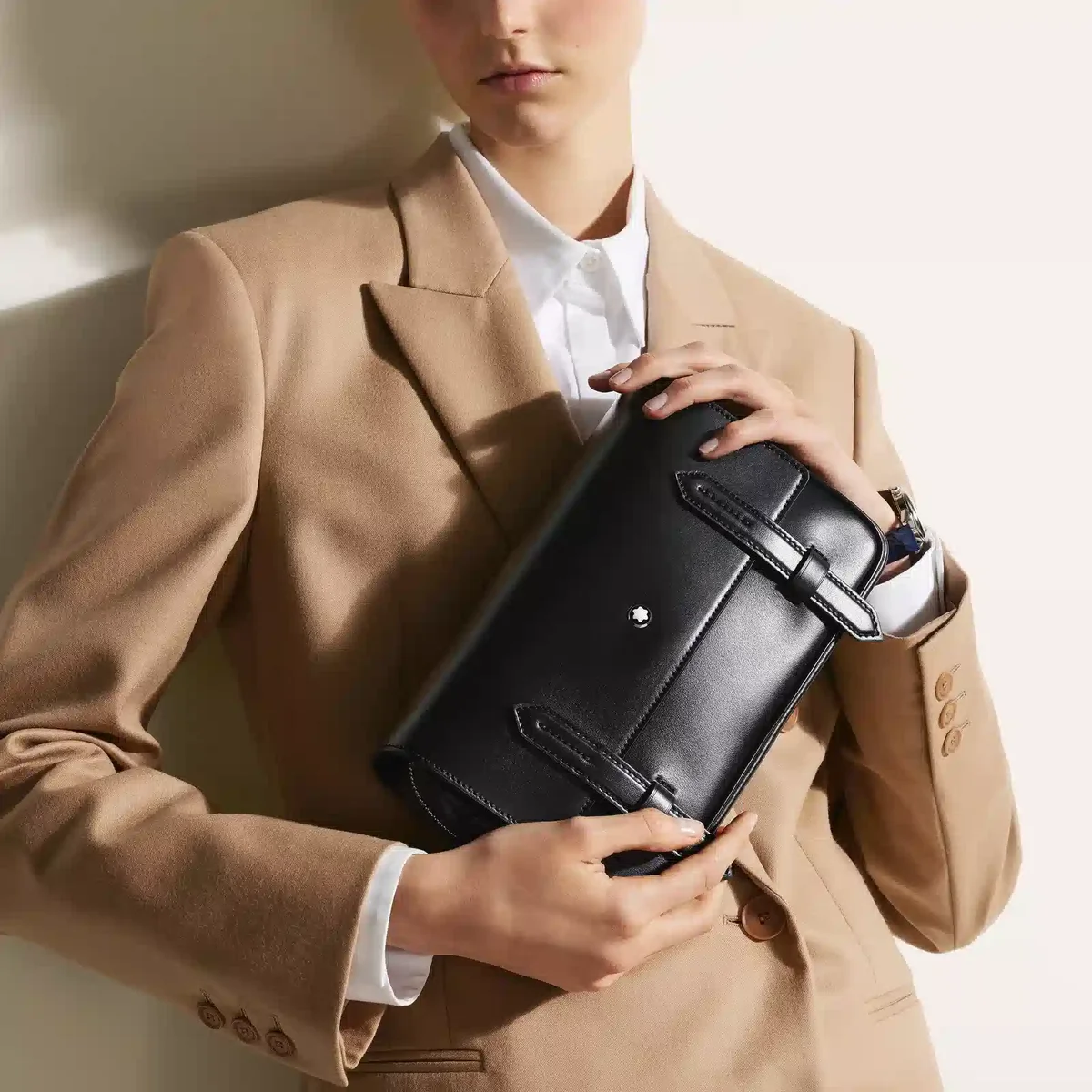 Inspirada na cultura da escrita, a Meisterstück Messenger é uma companhia elegante e fácil de usar para o dia a dia. Confeccionada em um novo couro preto de brilho intenso, todos os seus detalhes falam a linguagem da ponta da caneta: as costuras e o puxador do zíper lembram o formato da ponta, a essência da Montblanc. Uma versão maior do logotipo ilumina a bolsa. A alça de ombro removível em couro proporciona conforto ao transportá-la.Tenha em atenção que este produto contém ímanes. Antes de o utilizar, consulte a secção sobre ímanes no folheto do Guia de Assistência que acompanha o produto ou a secção de Apoio ao Cliente no site da Montblanc. Se tiver alguma dúvida, consulte o seu profissional de saúde.