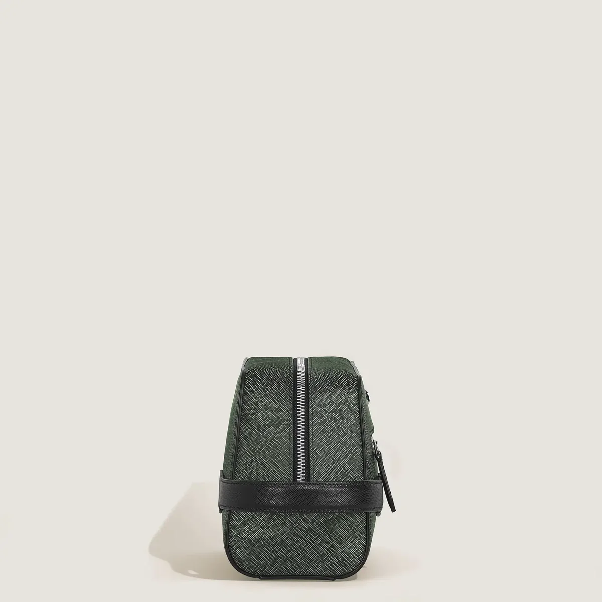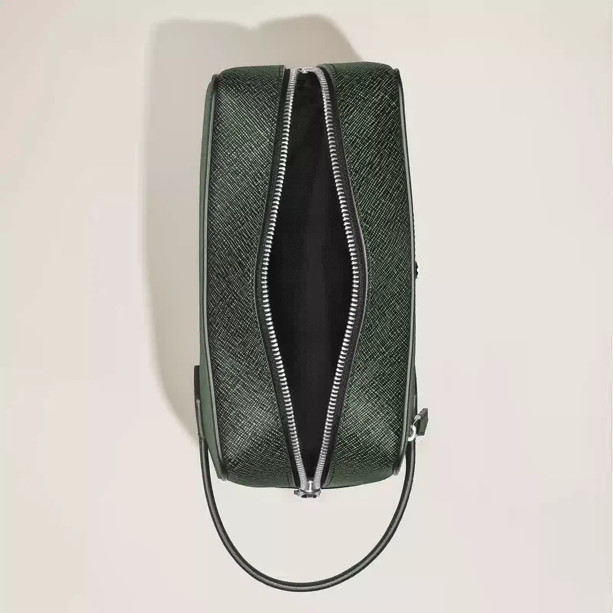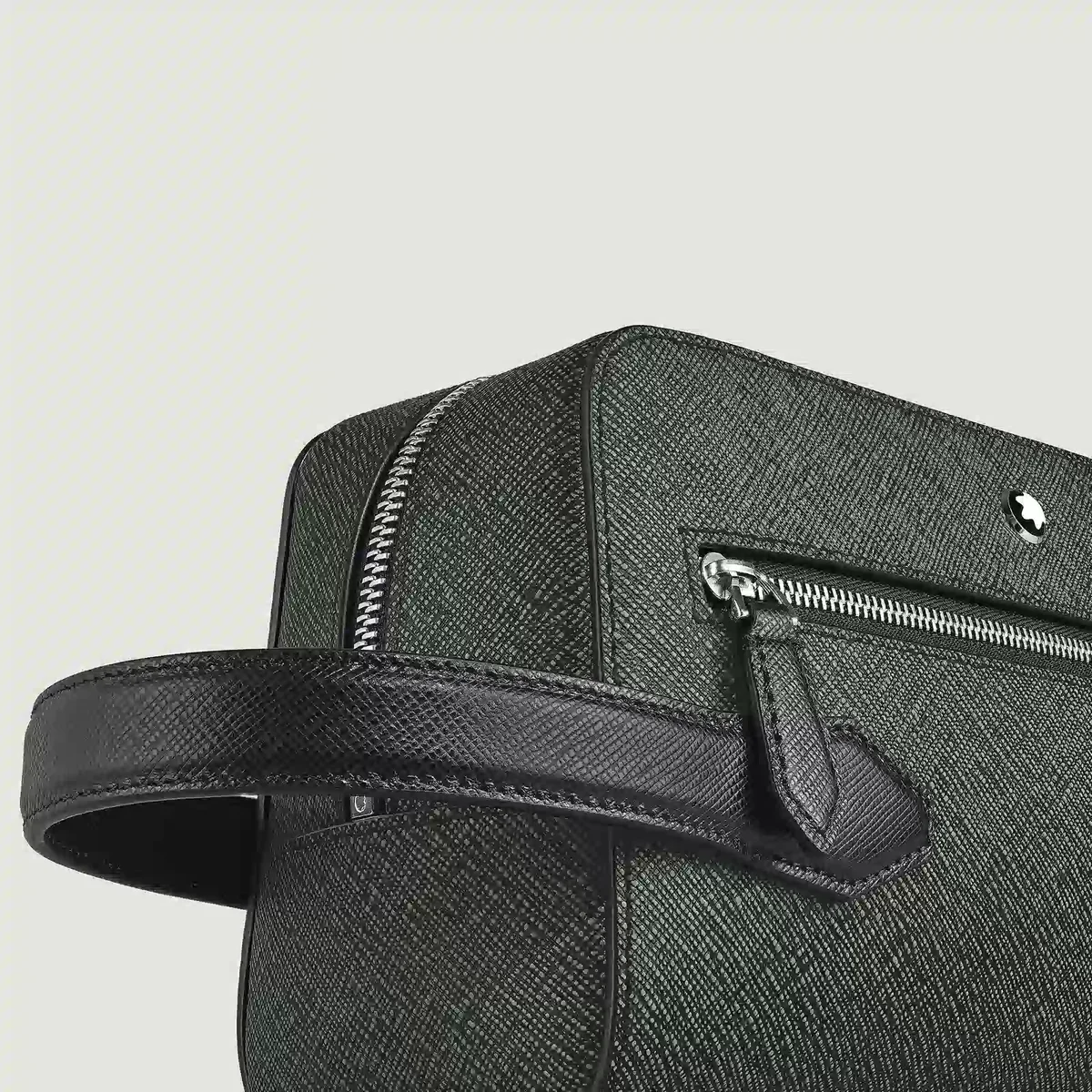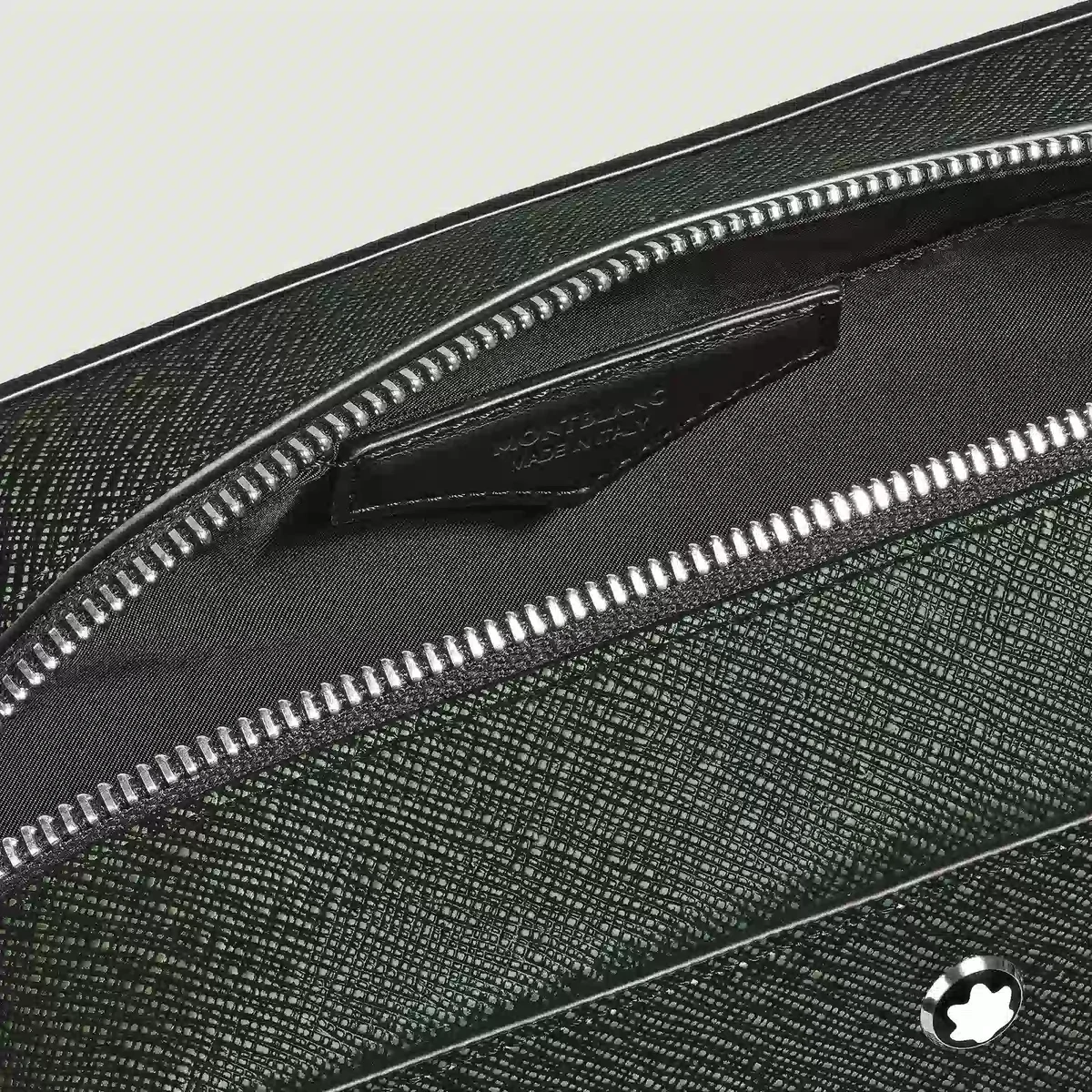 Seja para viagens de negócios ou férias, esta clutch é uma companheira de viagem indispensável. Confeccionada em couro Sartorial gravado numa requintada combinação de dois tons, cáqui elegante e preto, possui um interior espaçoso e um bolso externo com fecho para os seus itens essenciais. As alças de couro permitem transportá-la na mão ou dentro de uma mala de viagem.