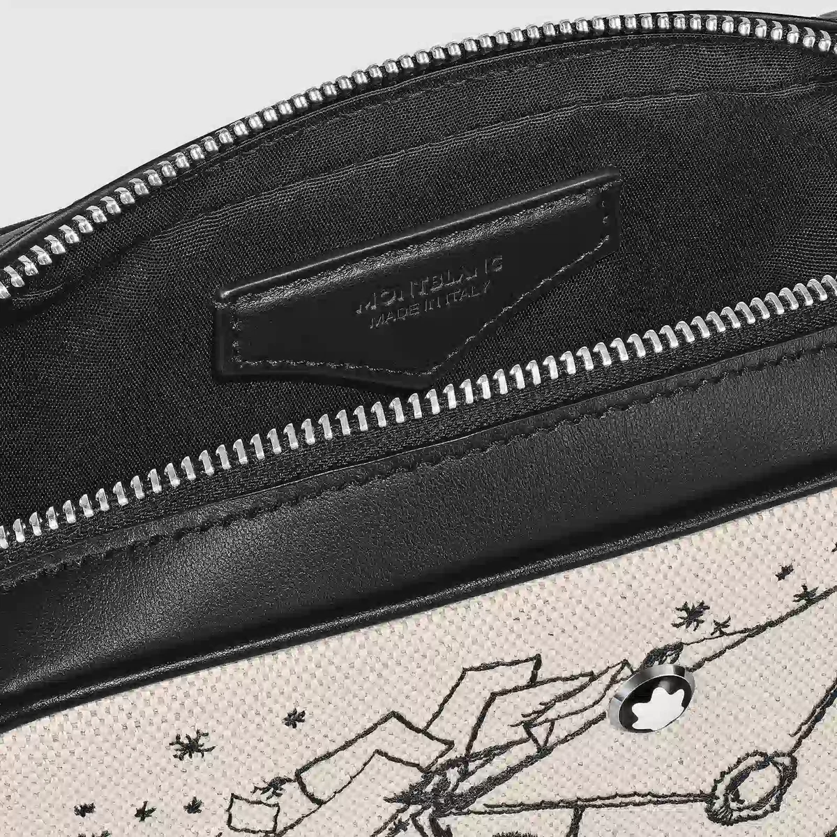 A mini bolsa a tiracolo Happy Holidays deste ano é uma companhia encantadora para aventuras festivas. Com um padrão bordado que representa papéis em espiral, a inconfundível Meisterstück e muitos outros elementos que falam a linguagem da Montblanc, esta bolsa compacta é uma prova do artesanato e do poder da escrita. No interior do compartimento principal, encontrará um prático bolso aberto e uma alça de ombro em pele ajustável e removível que oferece opções de transporte versáteis.