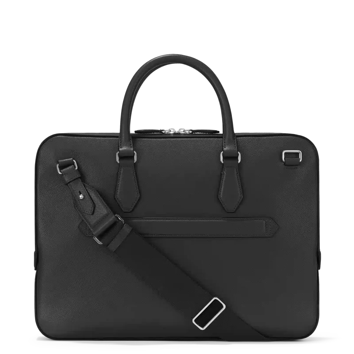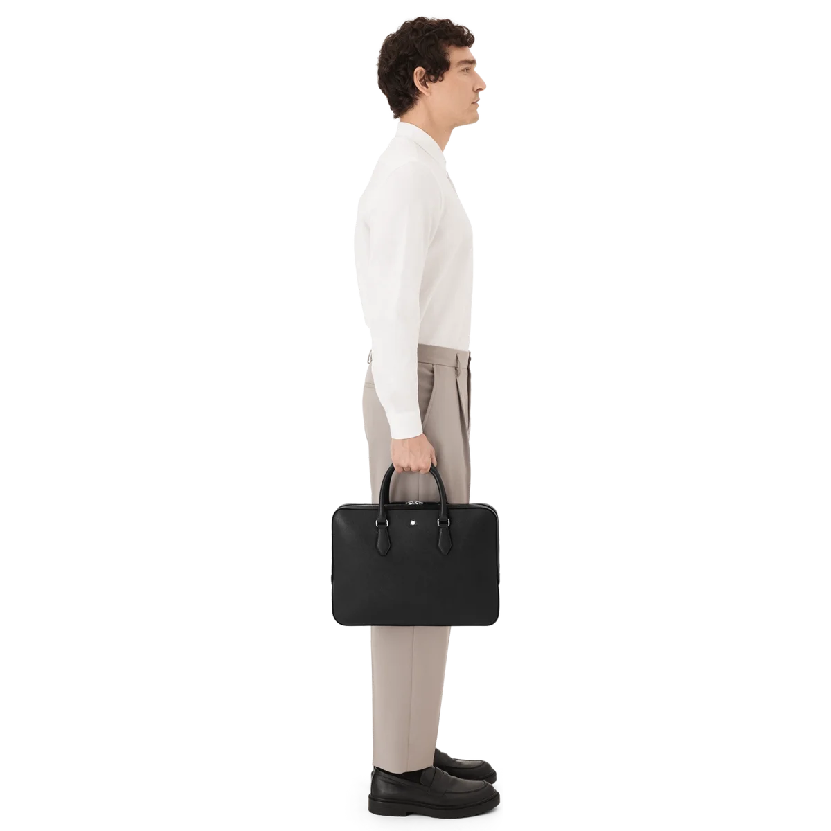 Fina e elegante, esta pasta confere um toque sofisticado aos conjuntos empresariais. Concebida em pele luxuosa com funcionalidade modular, personalize a sua pasta à sua medida, fixando acessórios mais pequenos. Os detalhes principais incluem alças moldadas para honrar a beleza da caligrafia, bem como o emblema Montblanc num novo tamanho maior. Identificação n.º MB130272 Dimensões 400 mm * 50 mm * 290 mm