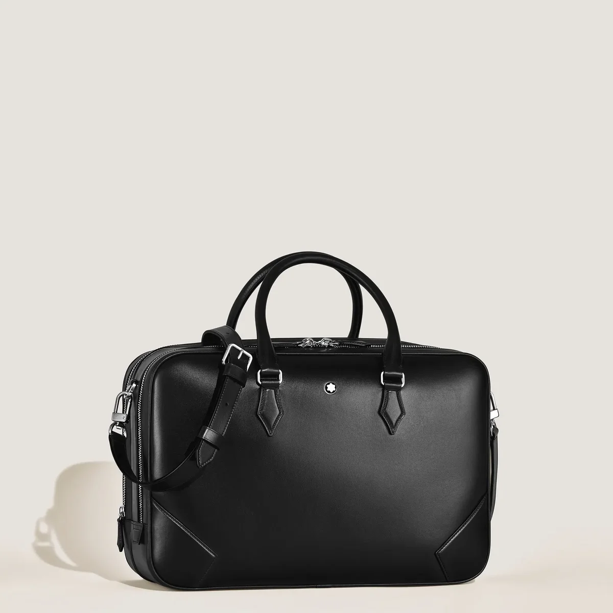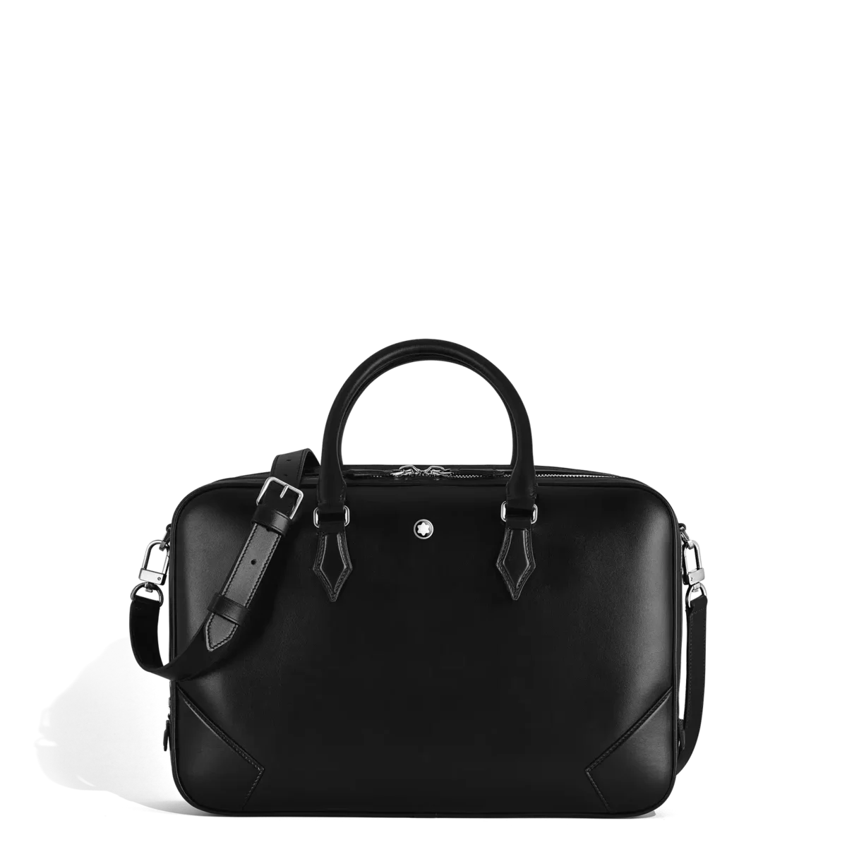 Apresentamos a pasta grande para documentos Meisterstück: um acessório elegante e multifuncional, confecionado em couro preto fino. Perfeita tanto para negócios como para viagens, esta nova pasta possui dois compartimentos espaçosos, um bolso com fecho para armazenamento seguro e dois bolsos abertos para fácil acesso. Para maior funcionalidade, inclui duas presilhas para manter os seus instrumentos de escrita à mão. Com o seu design elegante e capacidade de organização, esta pasta é um acessório essencial e elegante para o profissional em movimento.