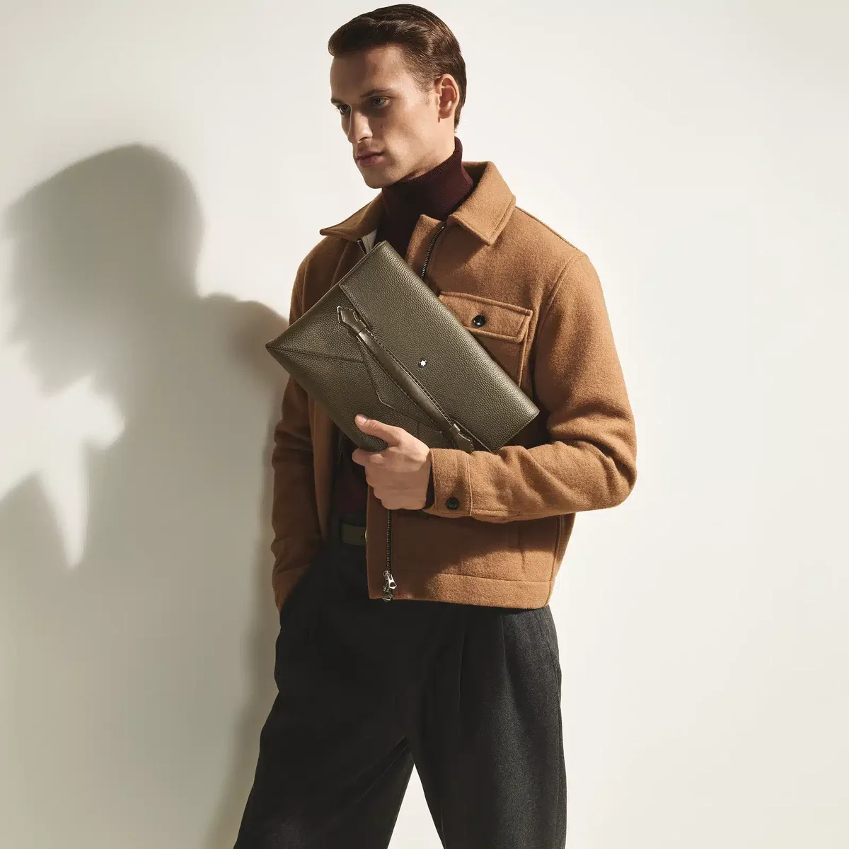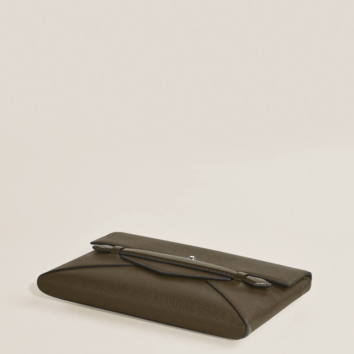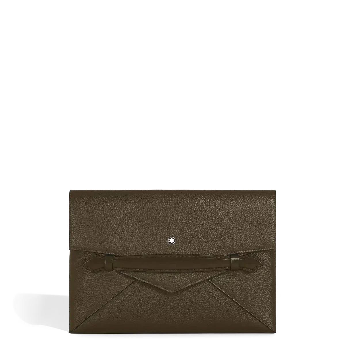 Concebida para quem procura elegância em todos os aspetos da sua vida, esta pasta para documentos é fabricada em pele de bezerro granada cáqui. A sua forma elegante inspirada num envelope é realçada por uma pega frontal em forma de ponta, acrescentando um toque da tradição Montblanc ao mundo dos acessórios modernos. O compartimento principal oferece um bolso aberto e duas presilhas para instrumentos de escrita para organização, enquanto o bolso traseiro garante fácil acesso aos itens essenciais.