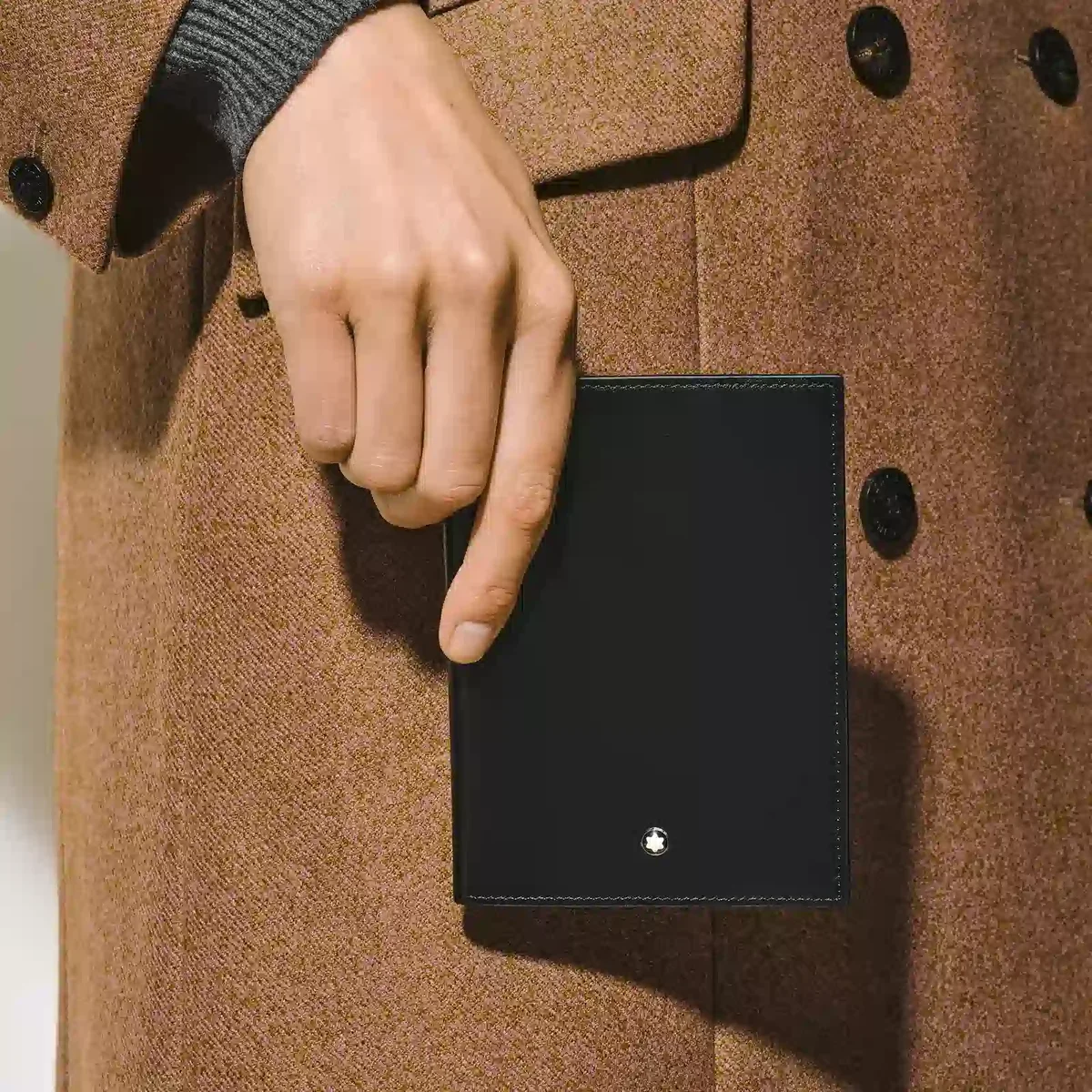 Confeccionado em couro liso e forrado com tecido preto, este porta-passaporte Meisterstück é um elegante companheiro de viagem para viagens de negócios ou fins de semana fora. Adequado para todos os passaportes internacionais, este sofisticado porta-passaporte possui um bolso aberto para fácil acesso, além de um pequeno bolso adicional para guardar o seu cartão de embarque.