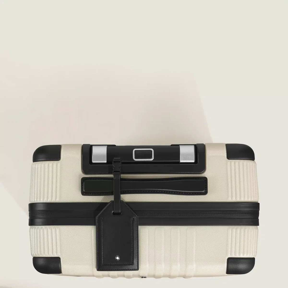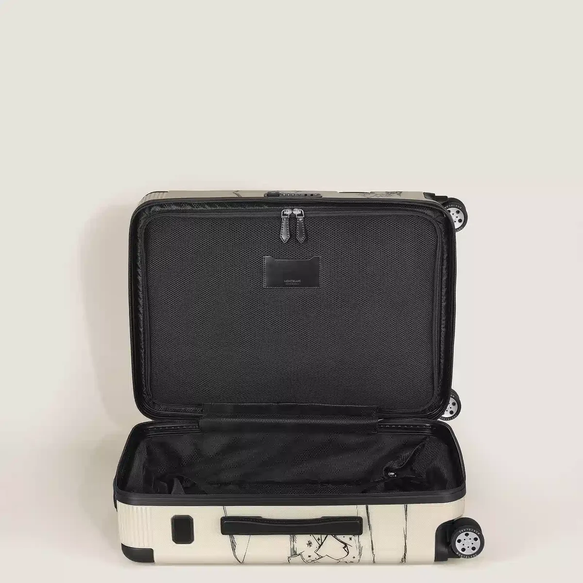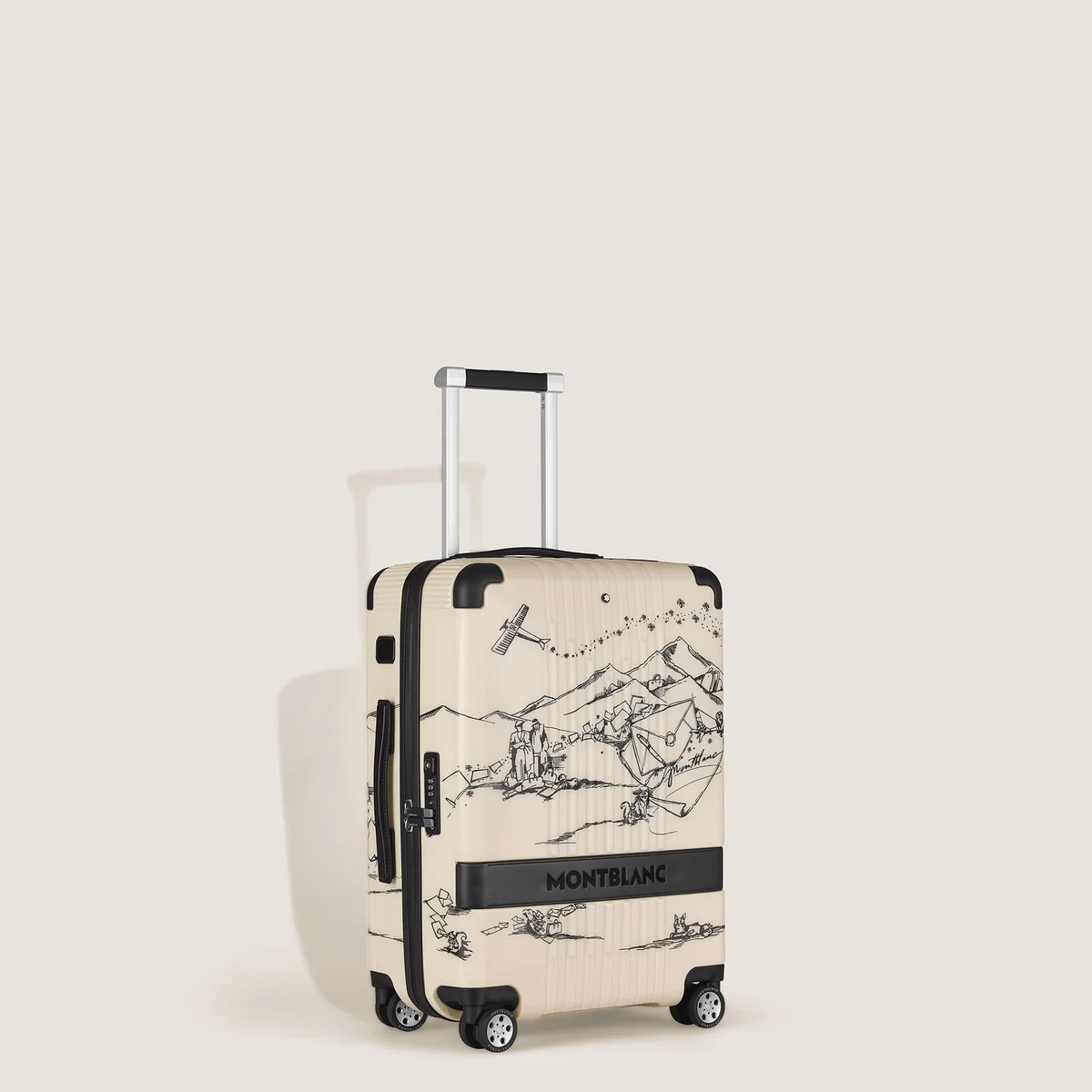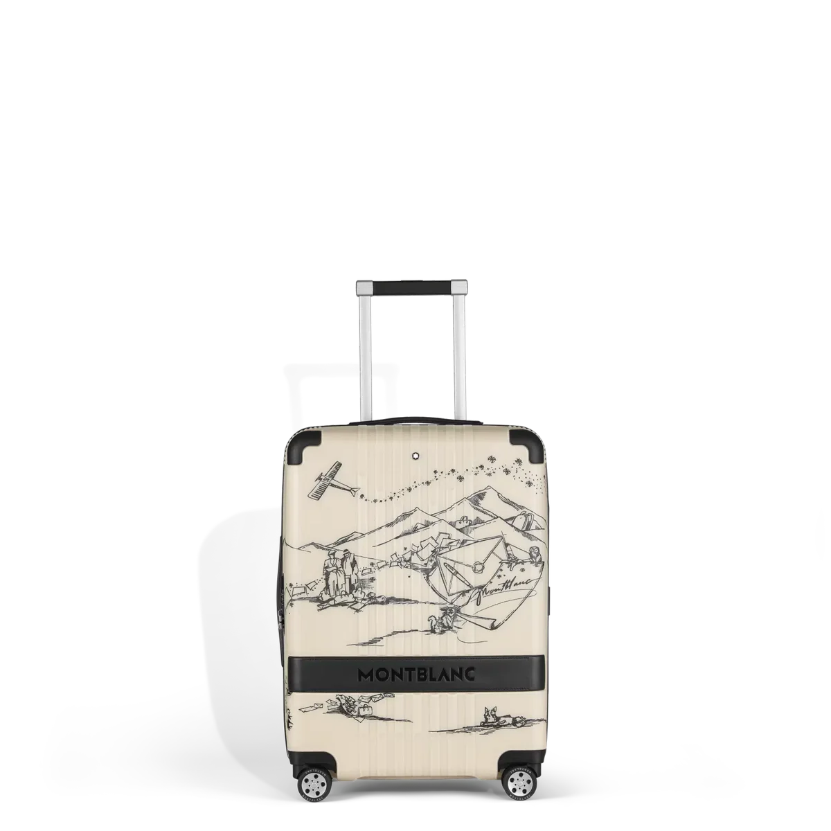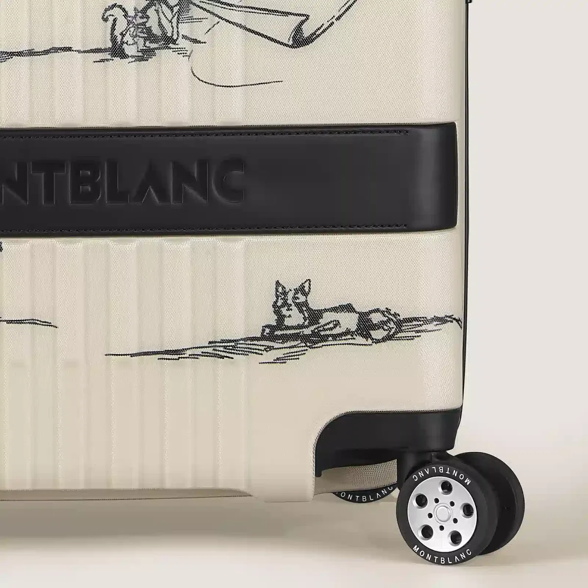 A nossa mala com rodas Happy Holidays é uma elegante companheira de viagem para o viajante moderno. Fabricada em policarbonato de alto desempenho com detalhes em couro preto, esta mala combina durabilidade com um estilo sofisticado. Decorada com uma cena invernal no Mont Blanc, uma técnica de serigrafia retrata a viagem da escrita através de papéis e envelopes em espiral, a Meisterstück, malas de viagem e muito mais. O interior possui dois compartimentos principais para uma arrumação organizada, com elásticos de um lado e uma rede preta do outro. Com as dimensões de 38 x 55 x 23 cm, cumpre frequentemente os critérios de bagagem de cabine. Como as restrições de bagagem de mão e de cabine podem variar de uma companhia aérea para outra, é recomendável confirmar os regulamentos específicos da sua companhia aérea antes da viagem.