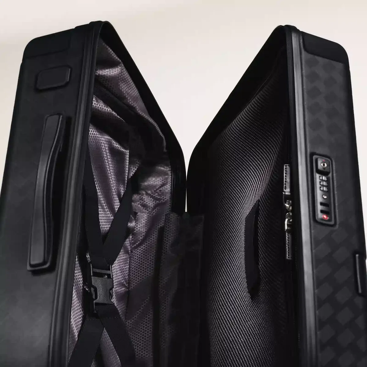 Combinando estética com funcionalidade, esta mala de cabine #MY4810 é a companhia ideal para viagens de negócios e escapadelas urbanas. As suas rodas silenciosas e as confortáveis pegas em pele com sistema multi-stop facilitam o transporte, enquanto o fecho TSA acrescenta segurança e praticabilidade. A mala com 38 x 55 x 23 cm (volume 37 L) é geralmente aceite como bagagem de cabine. O seu interior espaçoso está dividido em dois compartimentos principais e inclui um porta-cartões de visita.